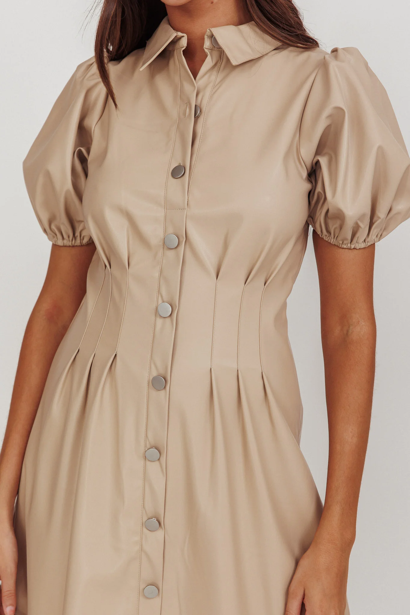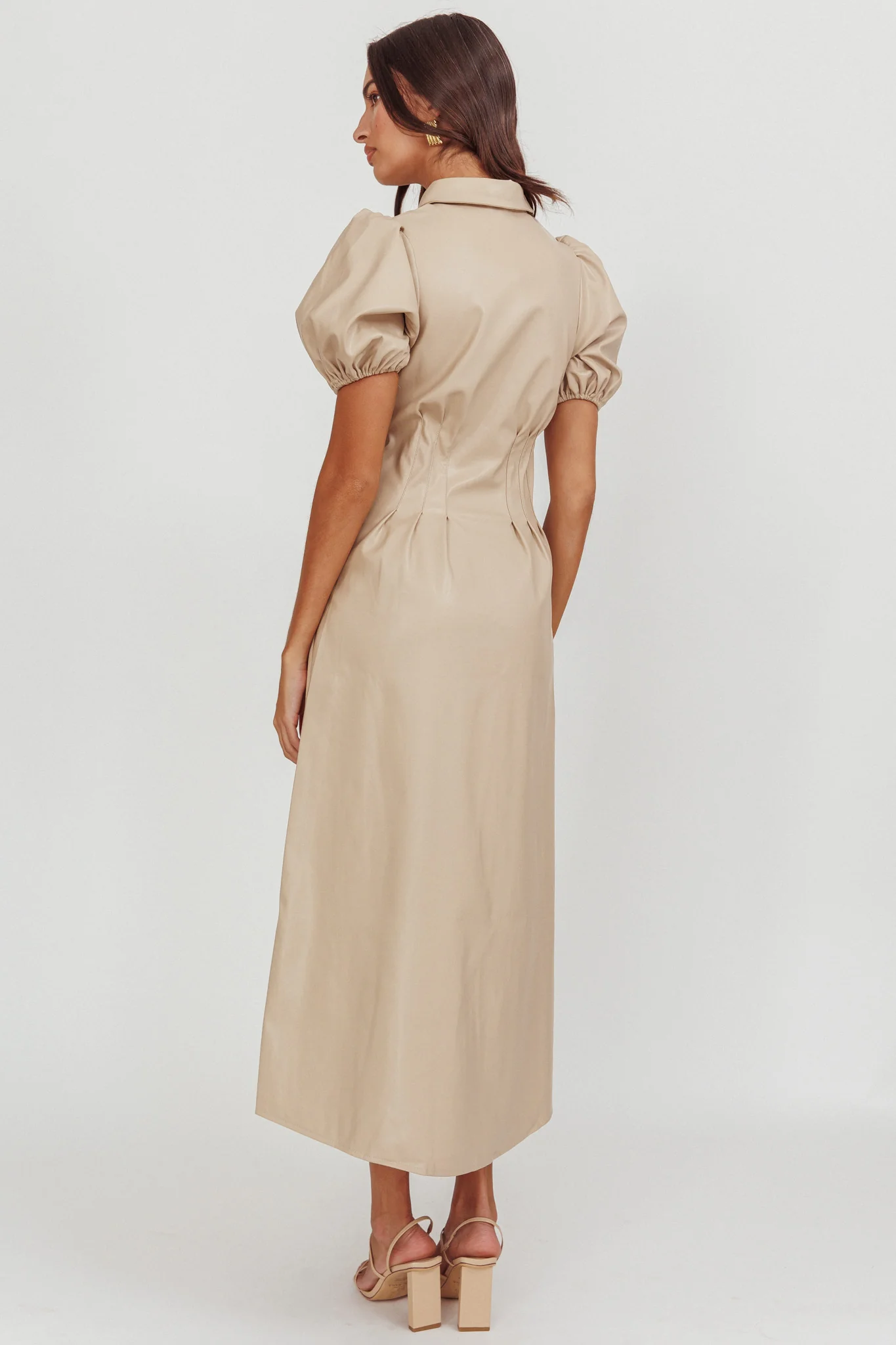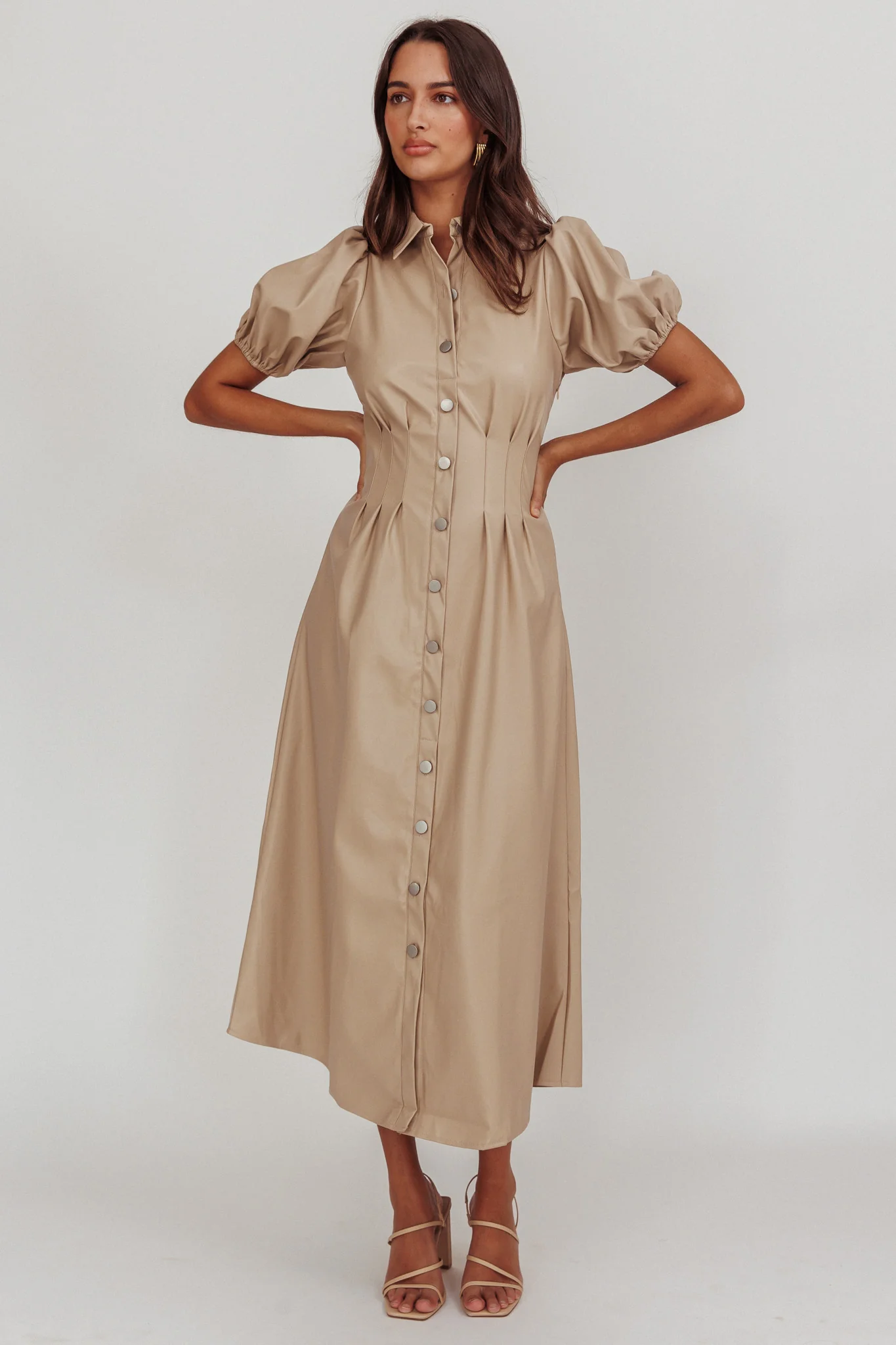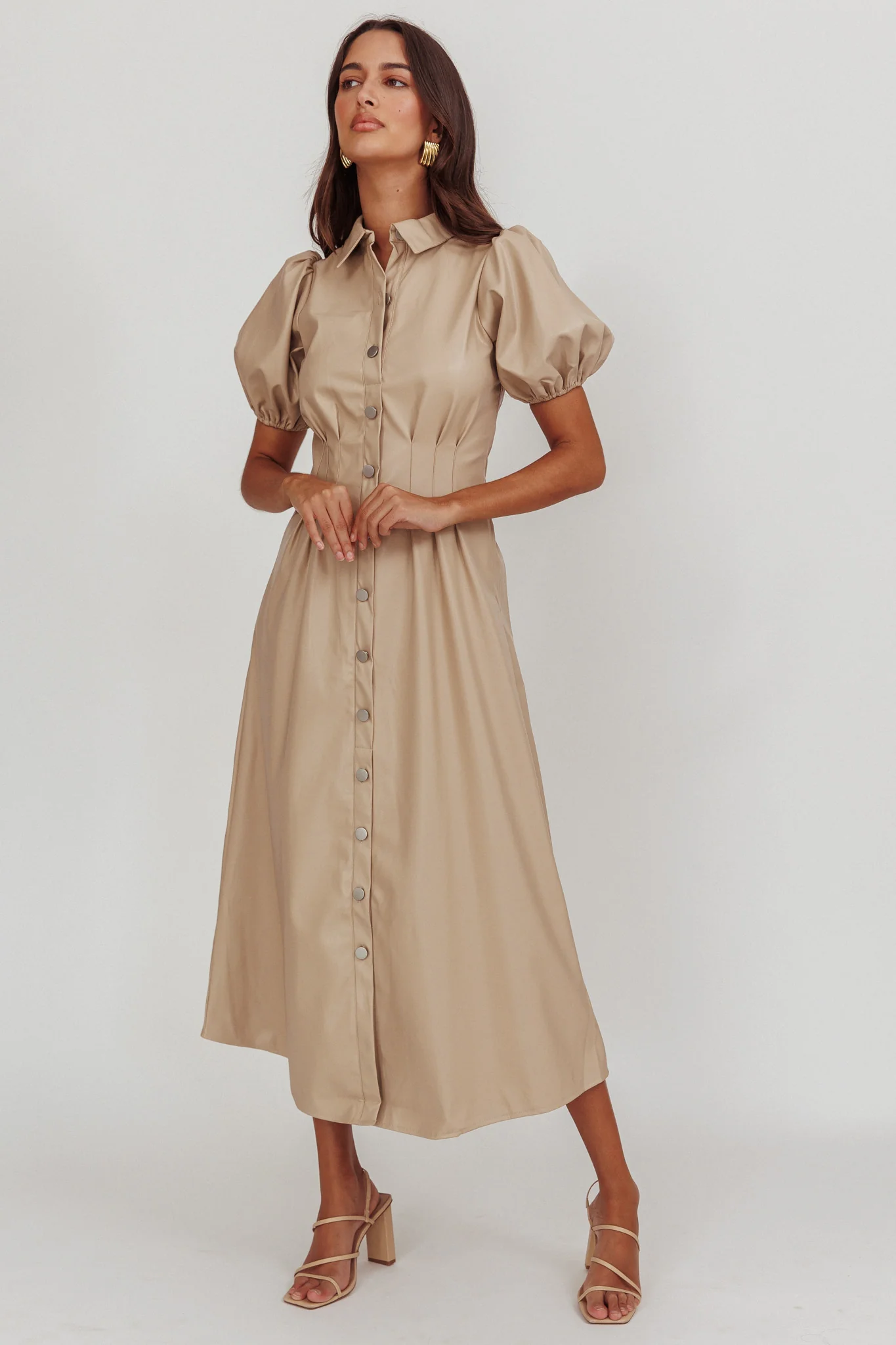 Zurich A-line Puff Sleeve Midi Dress Nude