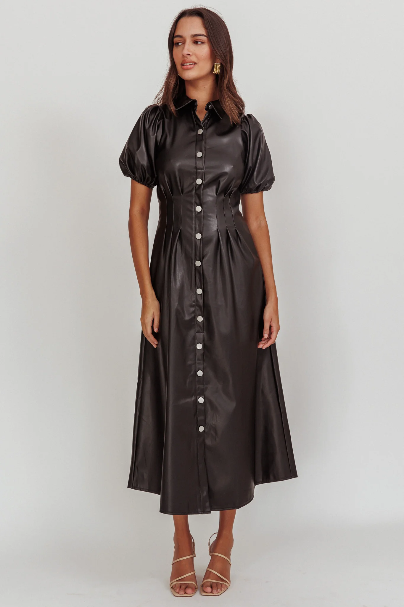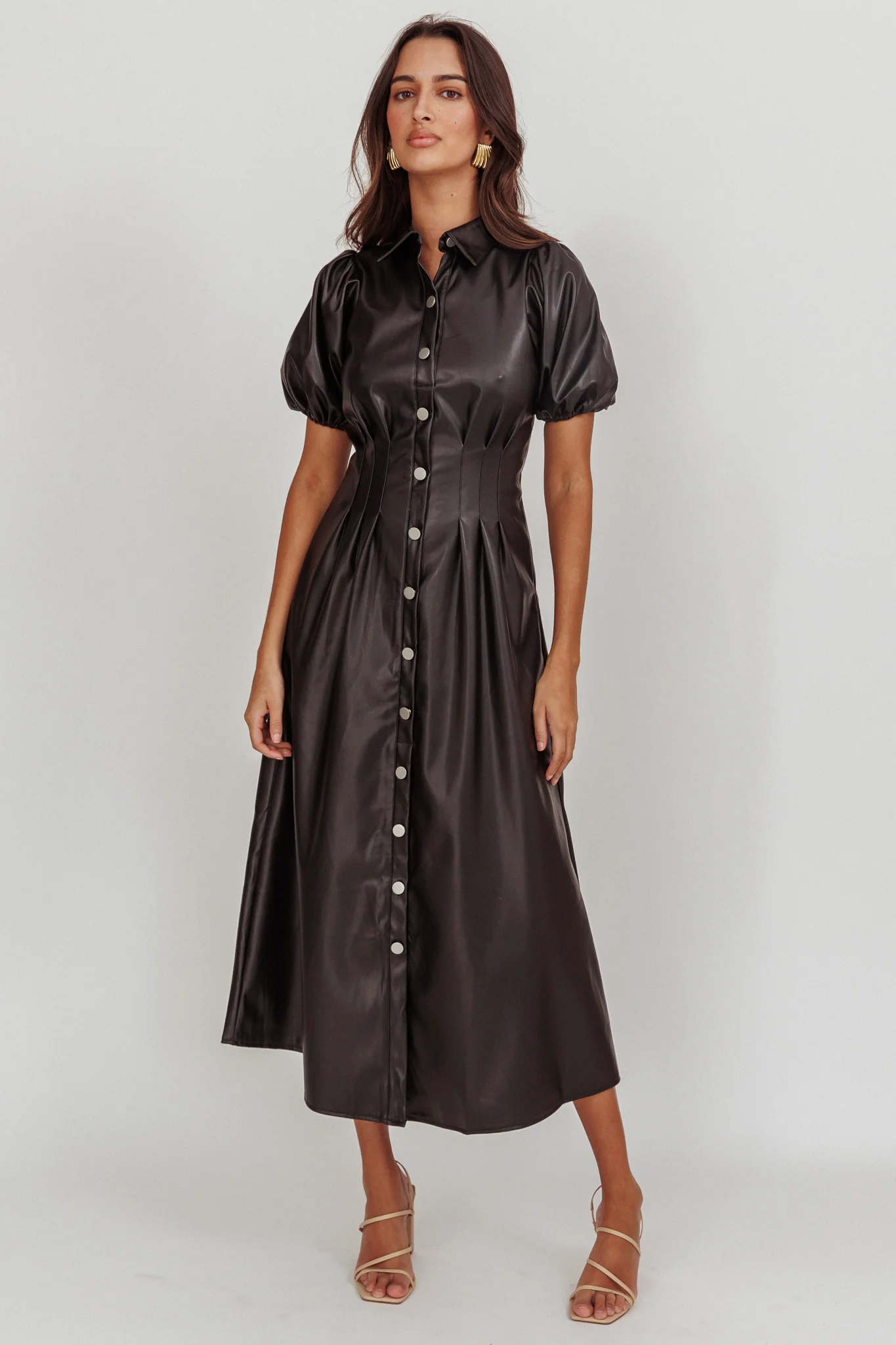 Zurich A-line Puff Sleeve Midi Dress Black