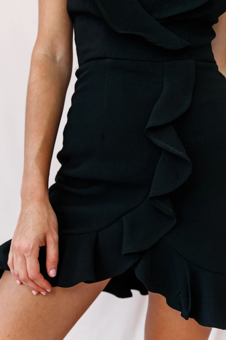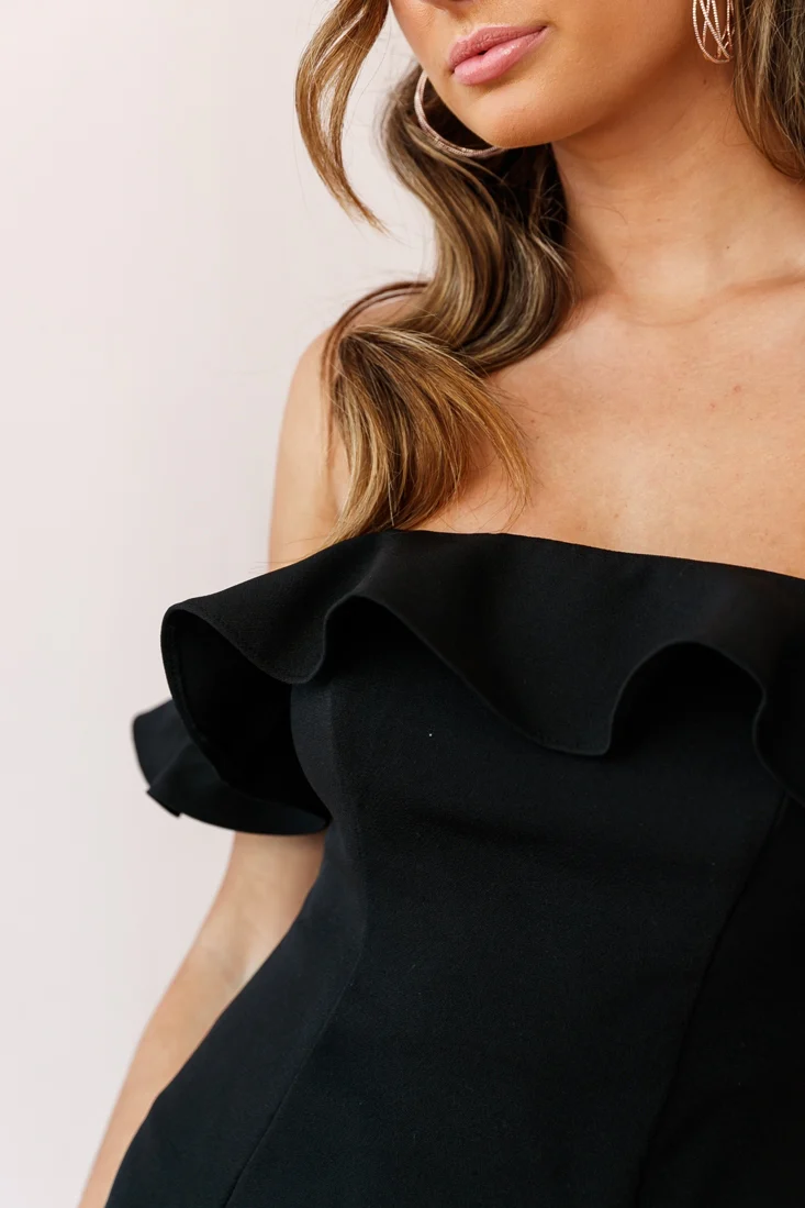 Ondine Bardot Neckline Fluted Hem Dress Black