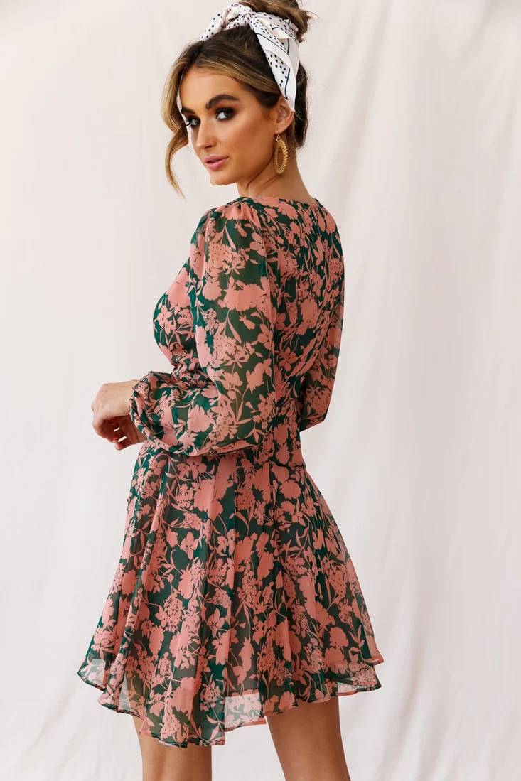 Wisteria Lane Long Sleeve Tea Dress Forest Green