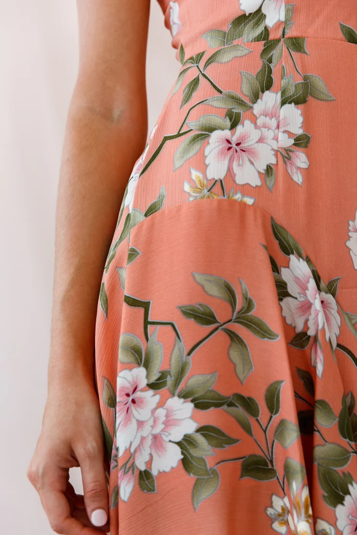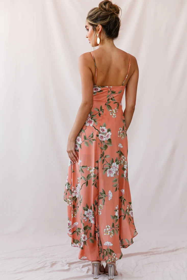 Imelda V-Neckline High-Low Hem Dress Peach