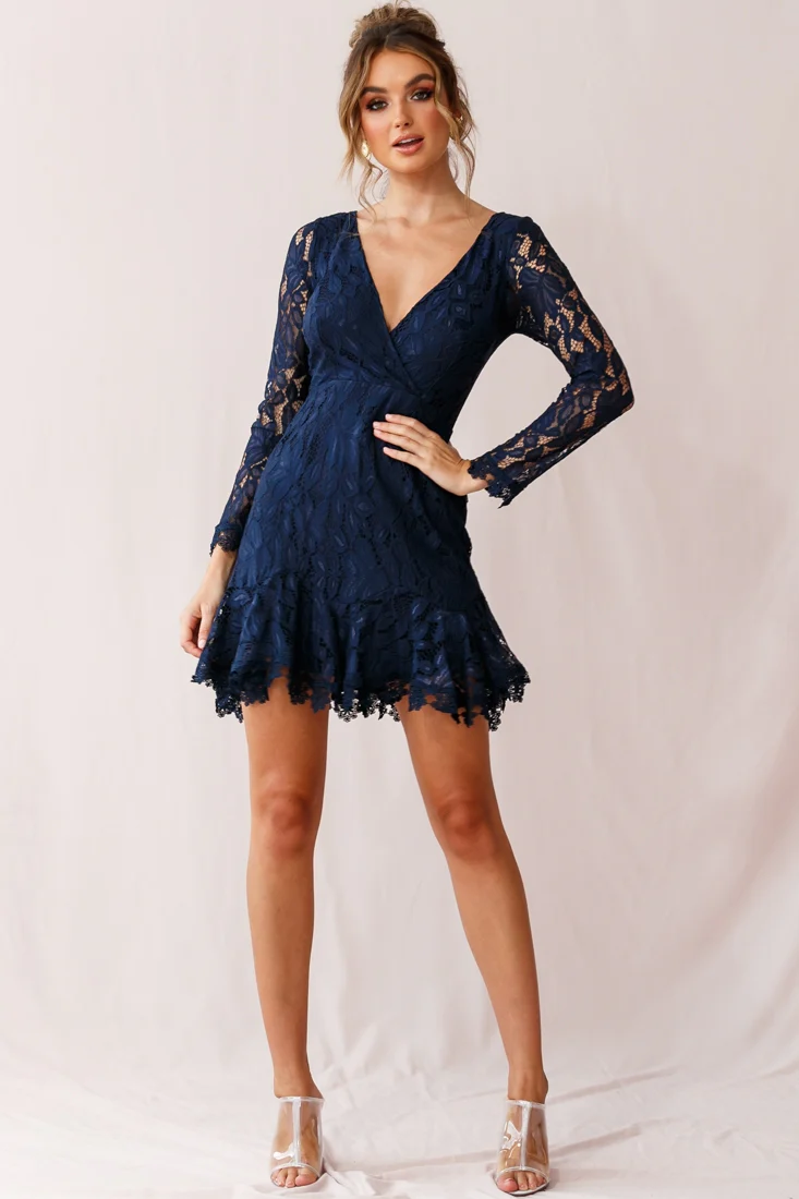 Kyle Long Sleeve Lace Dress Navy