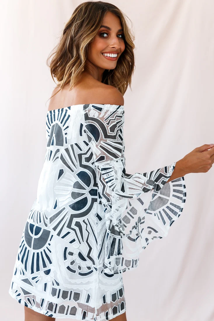 Carson Crochet Bell Sleeve Dress White