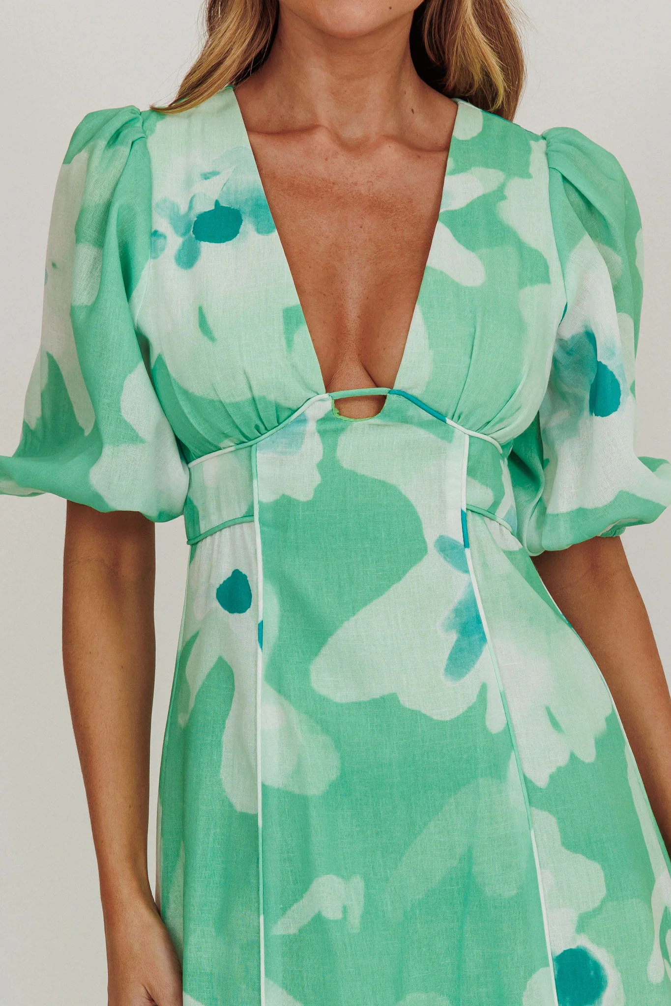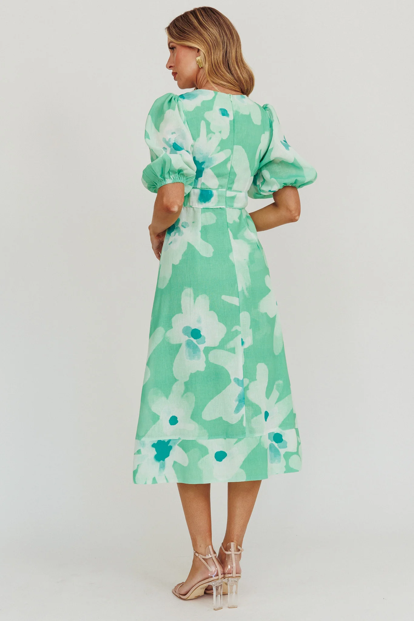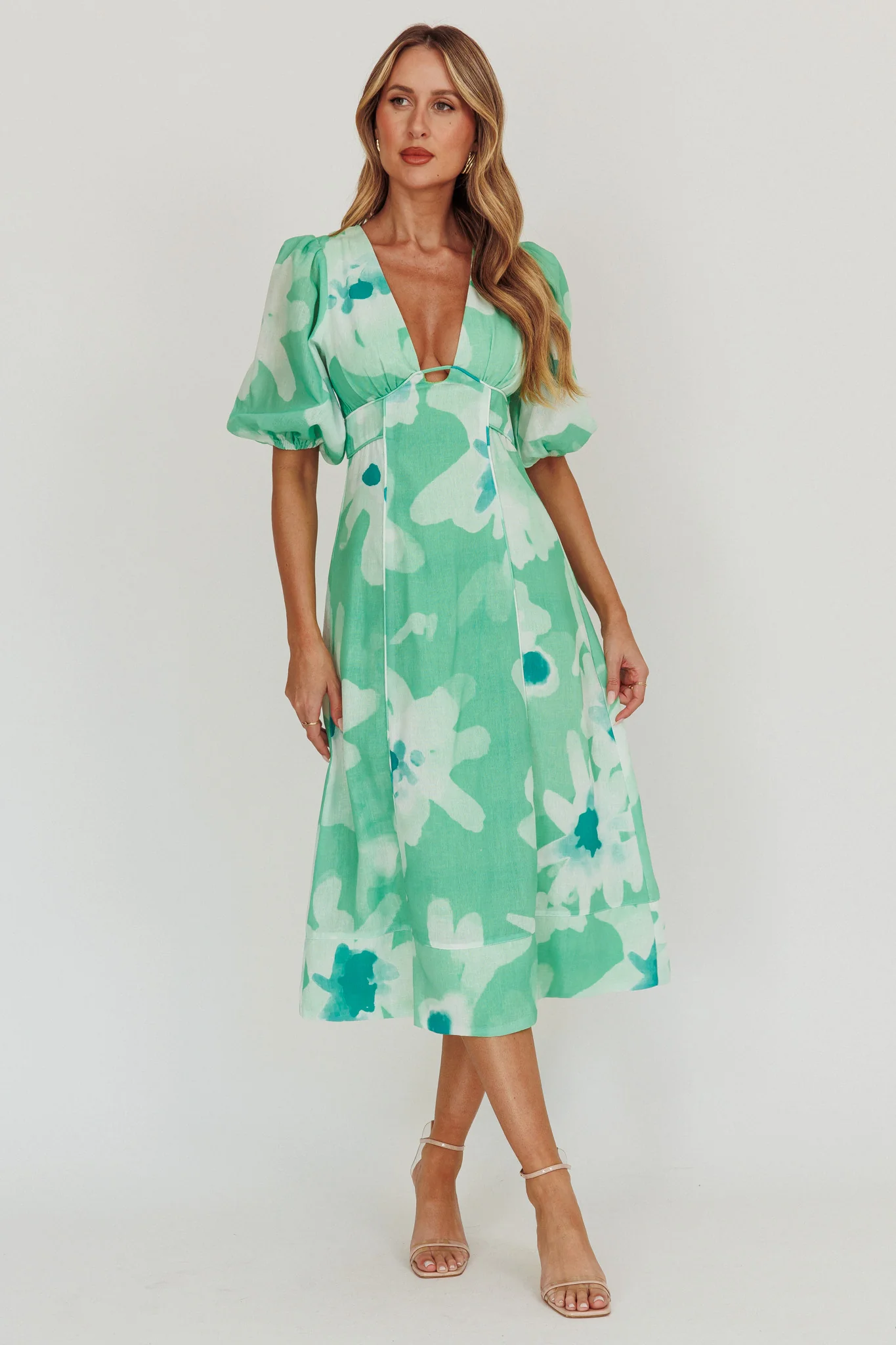 Elias Puff Sleeve Midi Dress Green