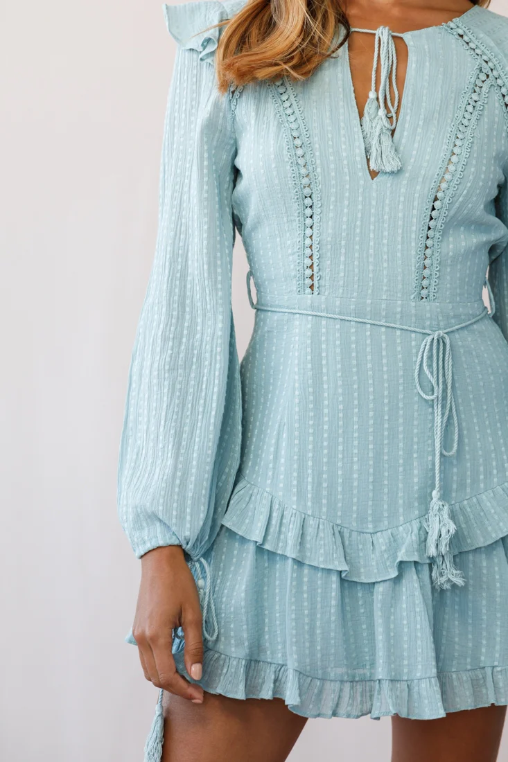 Queensland Tiered Frill Belt Dress Sage