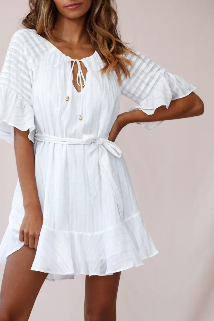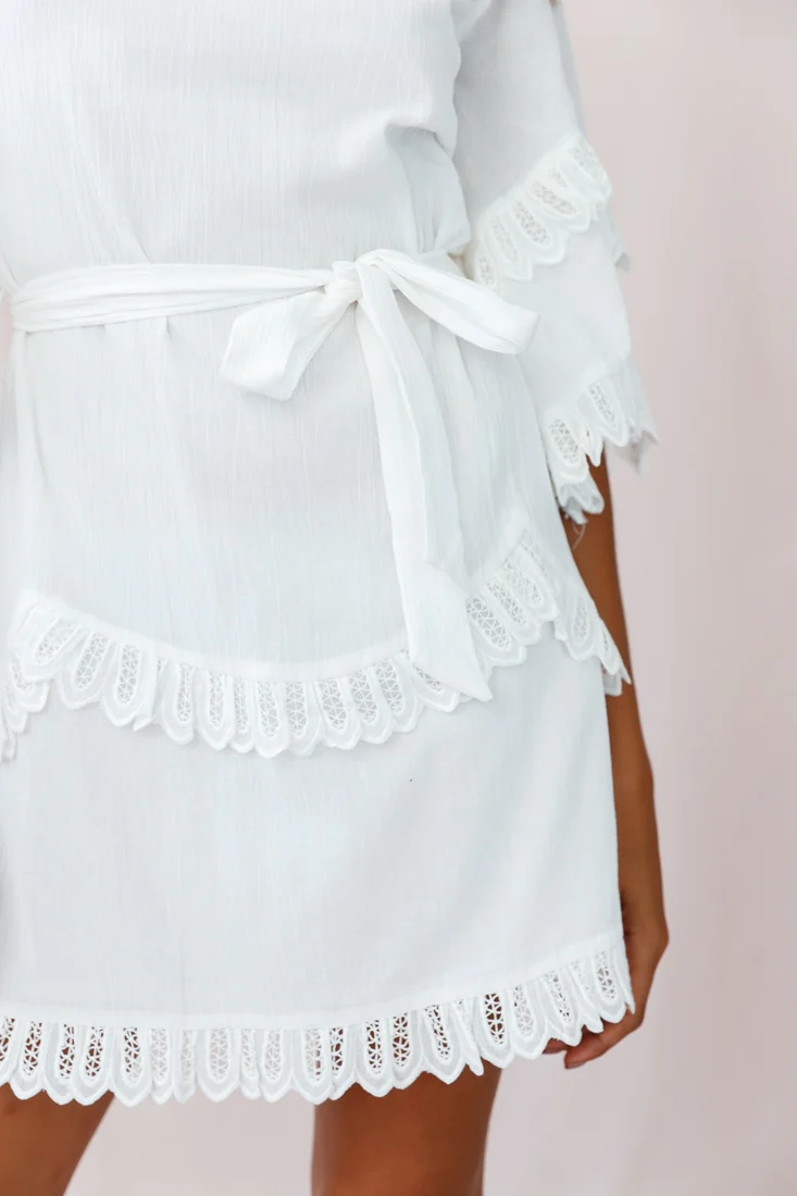 Talitha Waist Tie Lace Trim Dress White