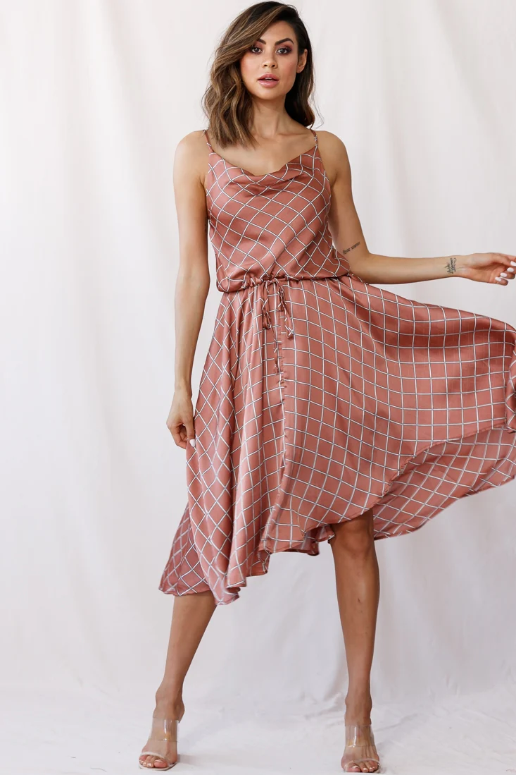 Pepita Cami Strap Wrap Dress Blush