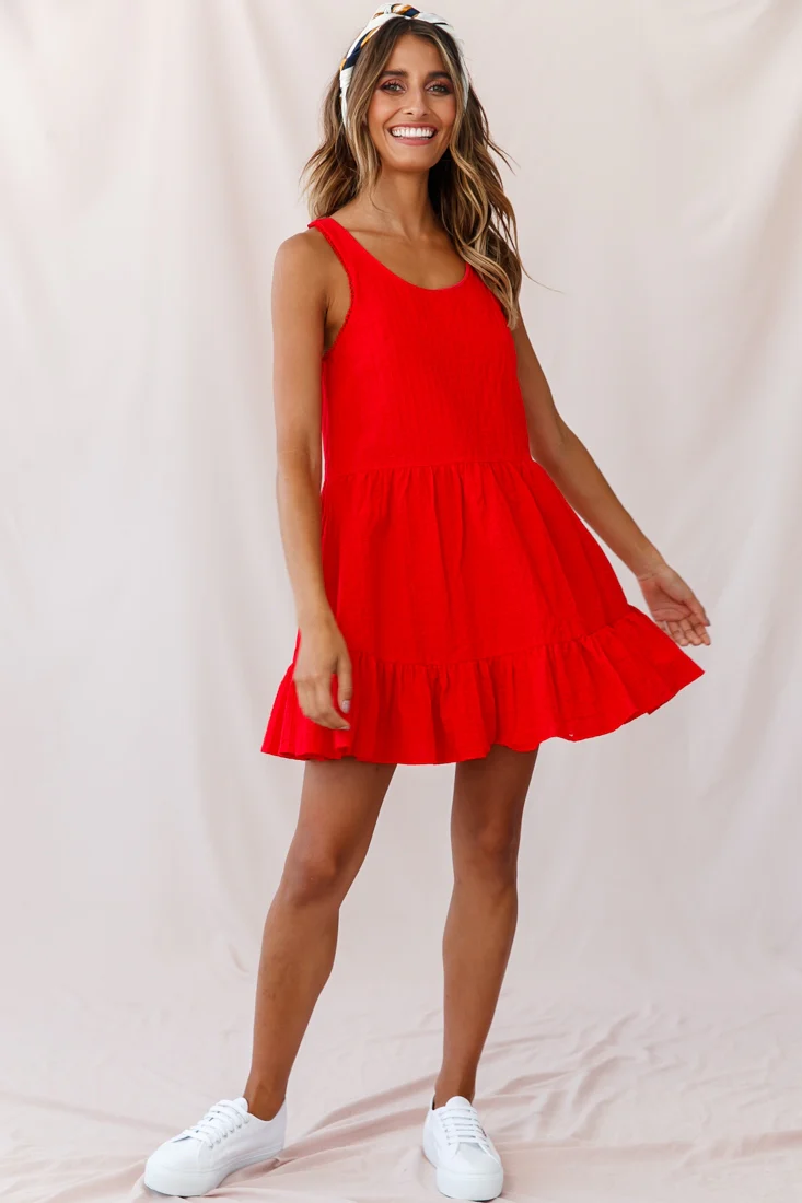 Heather Round Neck Swing Dress Red