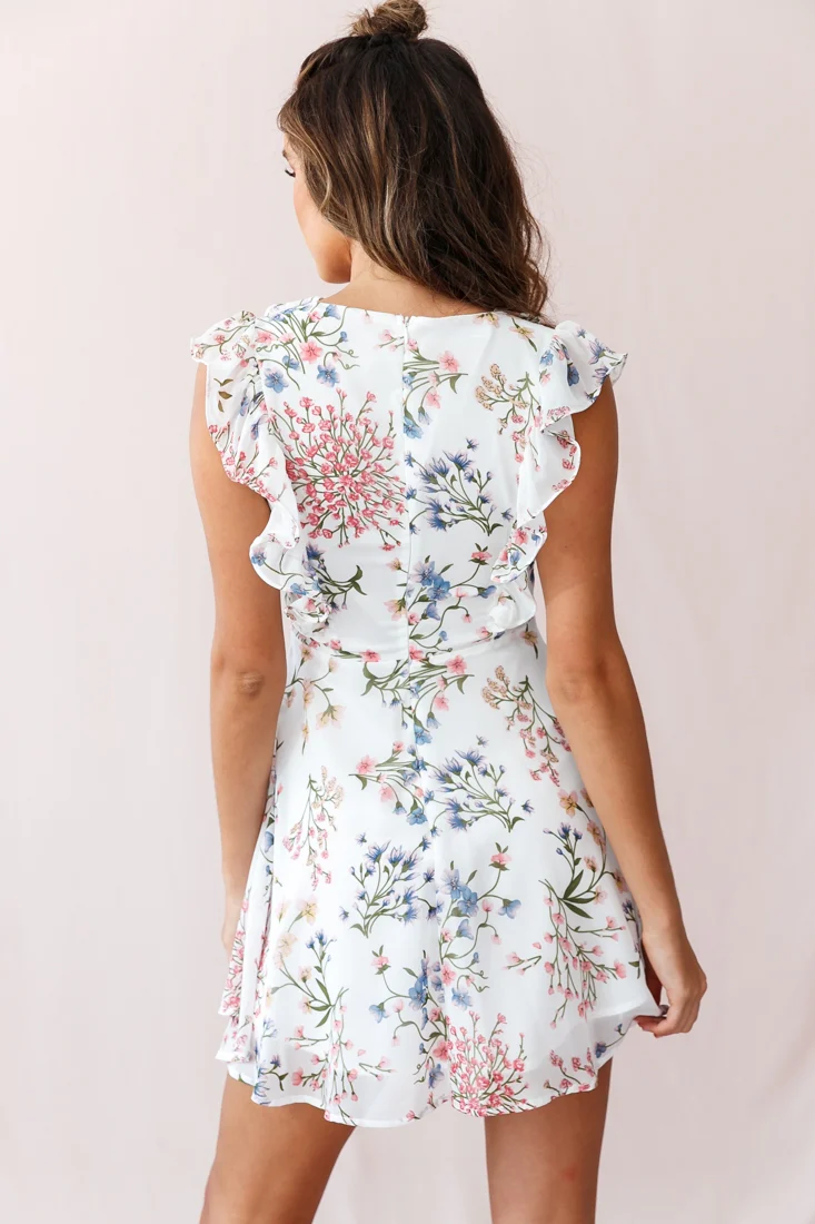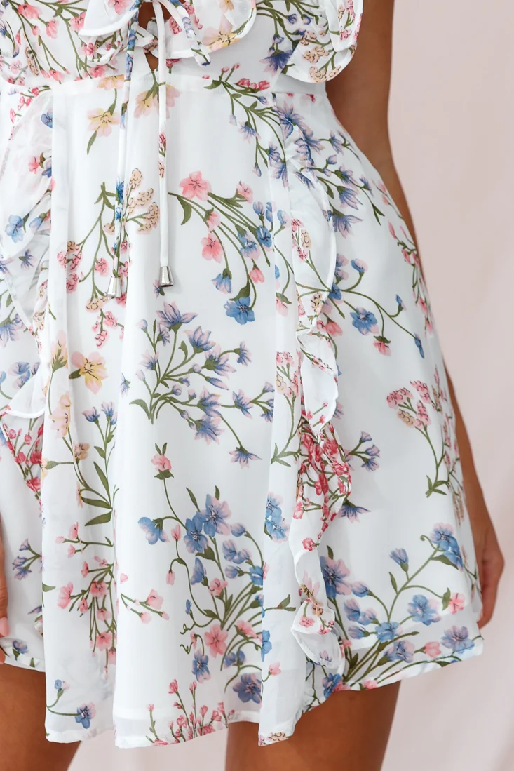 Maison Lace-Up Bust Ruffle Dress Ivory Floral