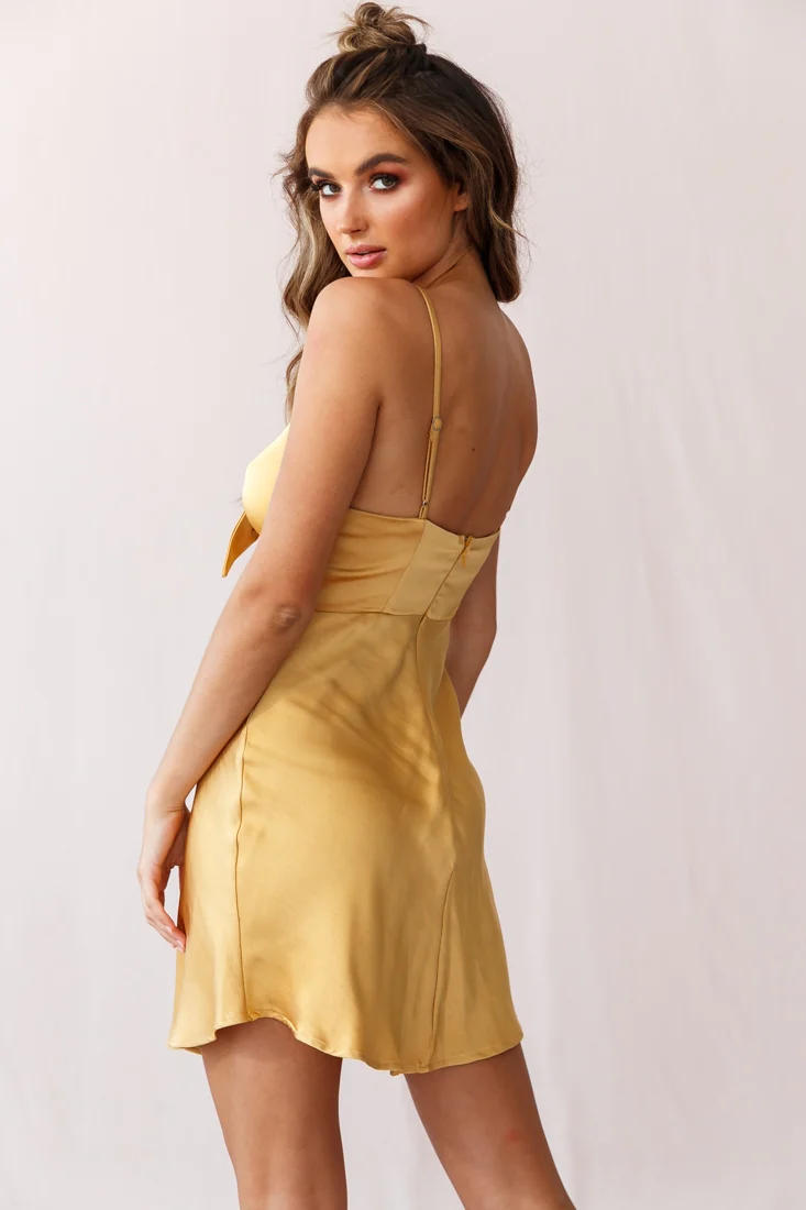 Starry Night Satin Bust-Tie Mini Dress Mustard