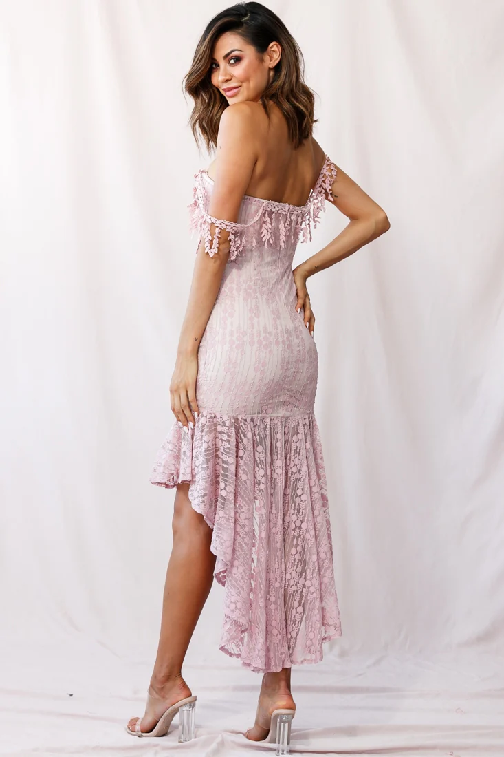 Fairytale Embroidered Mesh High Low Hem Dress Blush