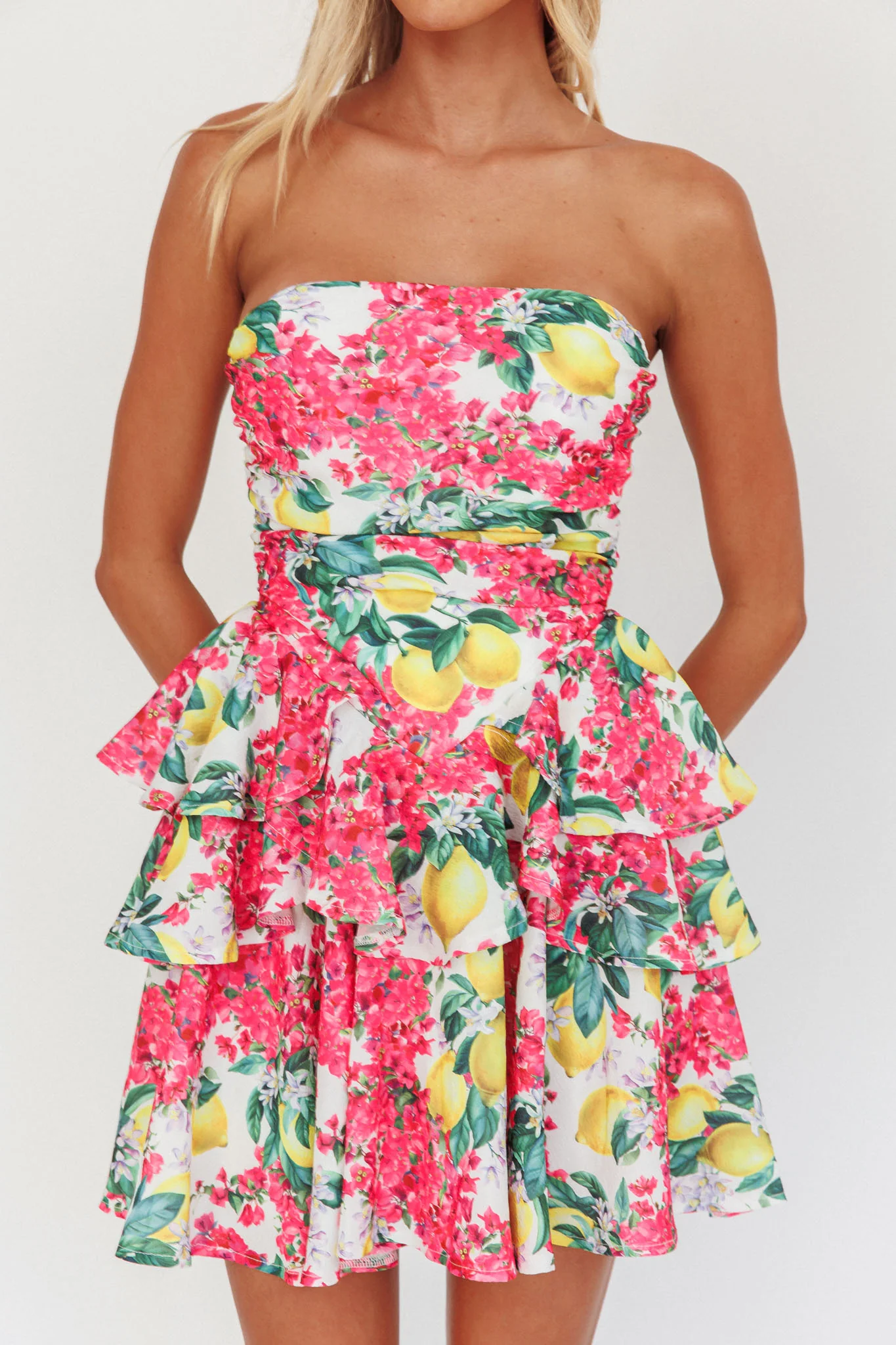 Like Me Tied Back Layered Mini Dress Citrus Pink