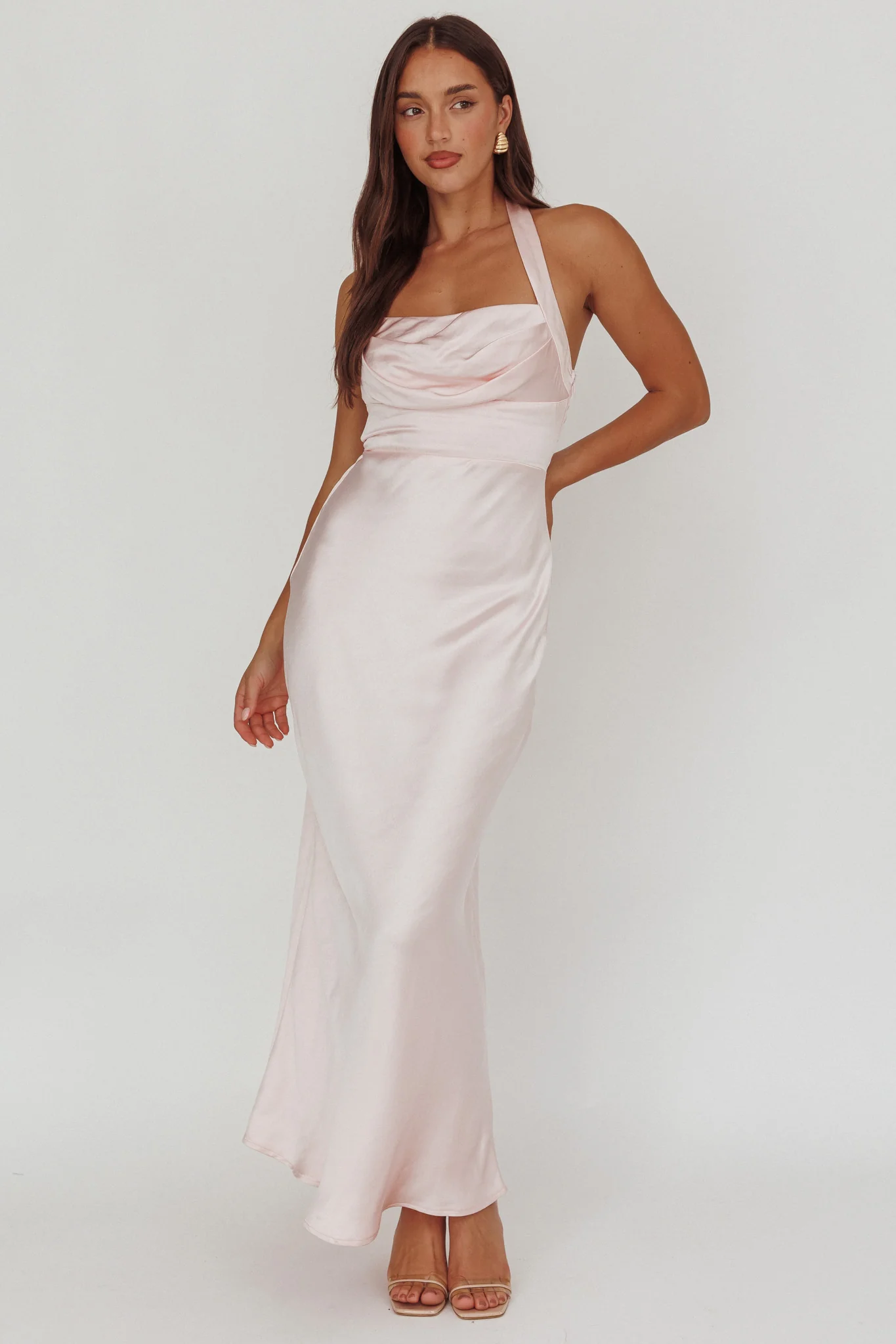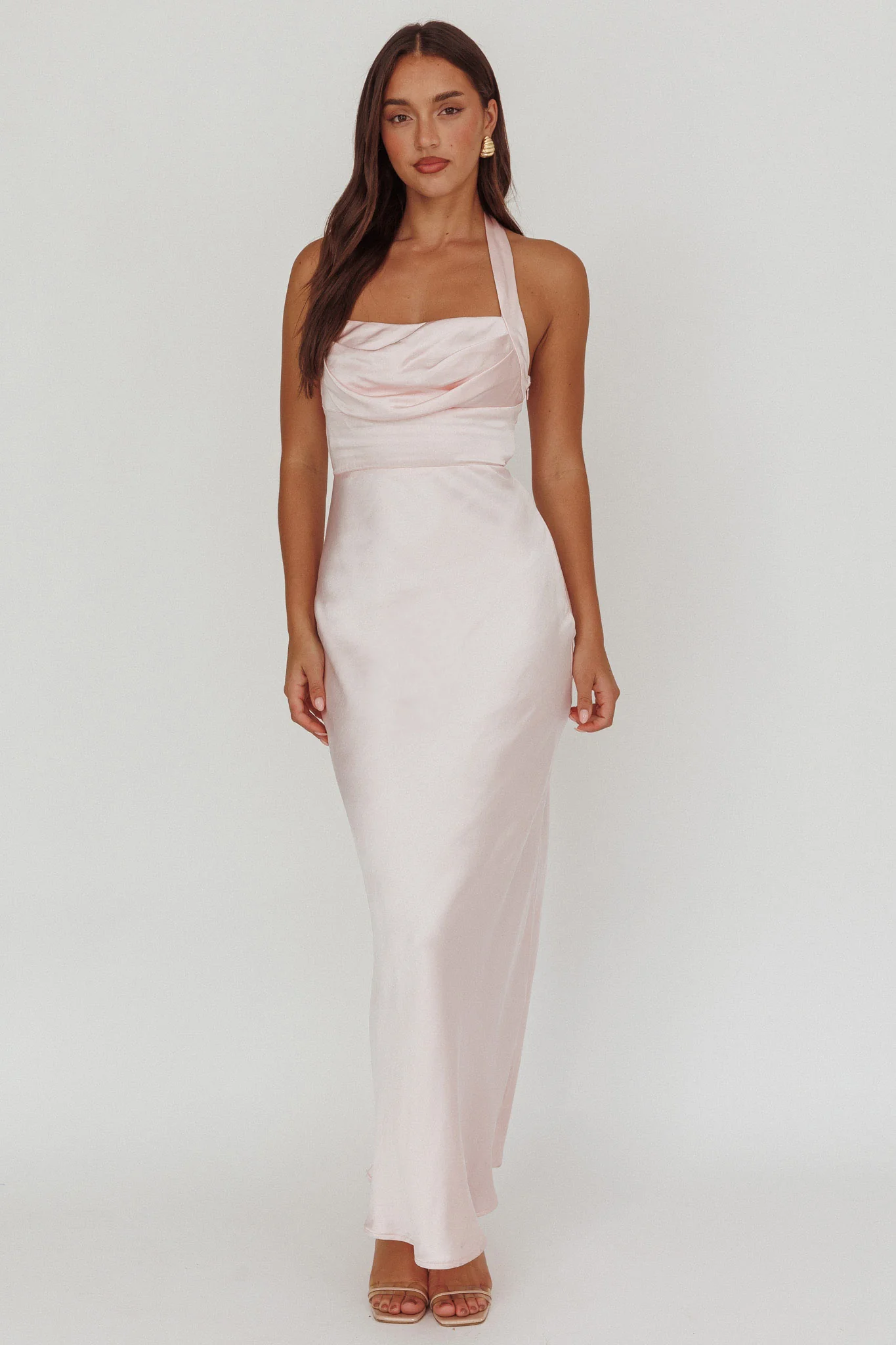 Fair Play Gathered Bust Halter Maxi Dress Pink