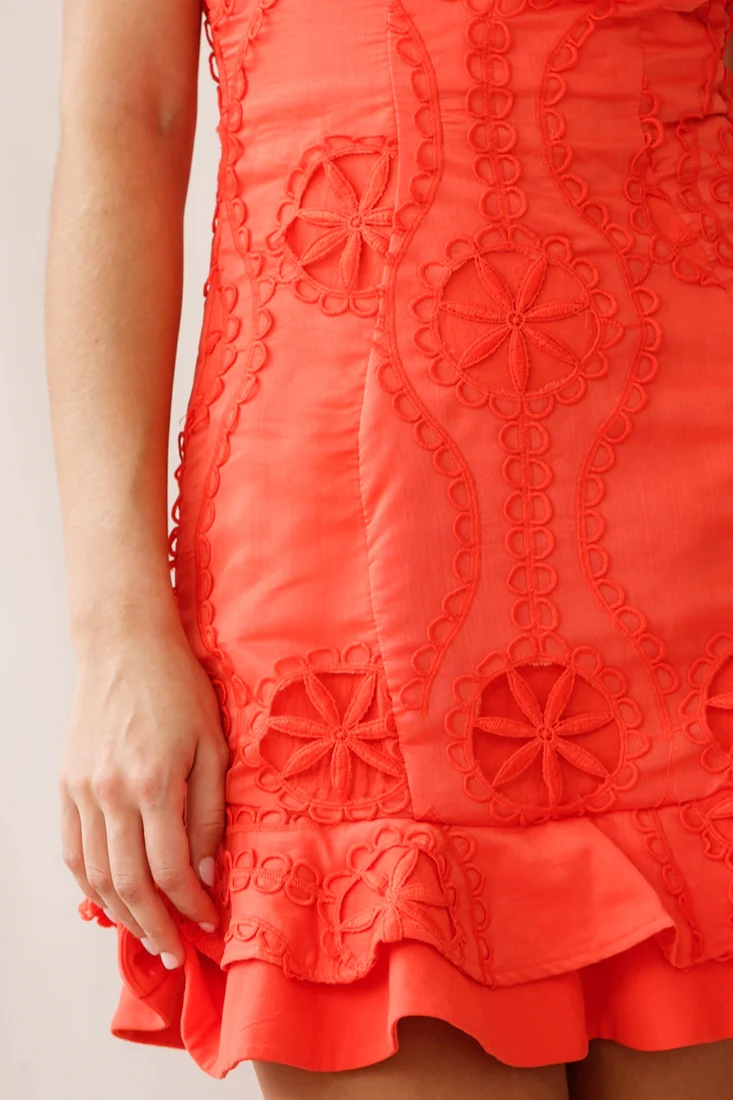 Virtue Cami Strap Embroidered Flounce Hem Dress Tangerine