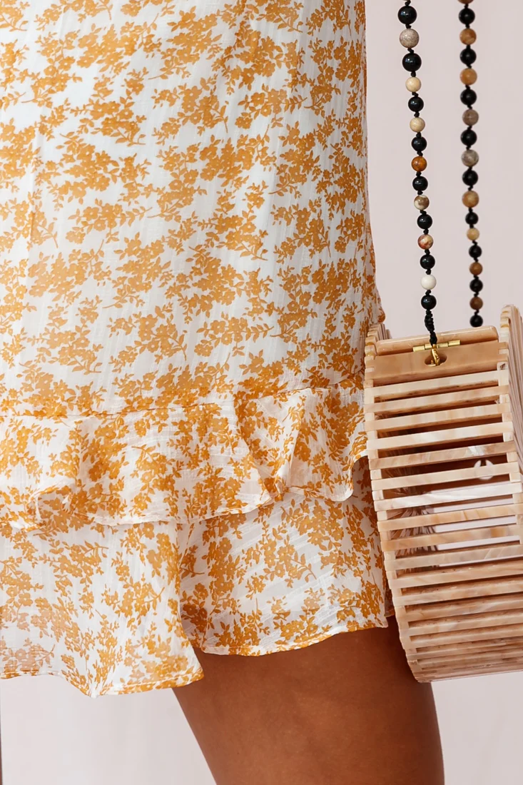 Pretty Please Frill Detail Tie-Back Dress Floral Print Mustard