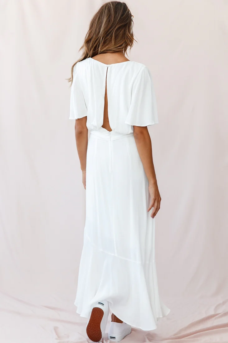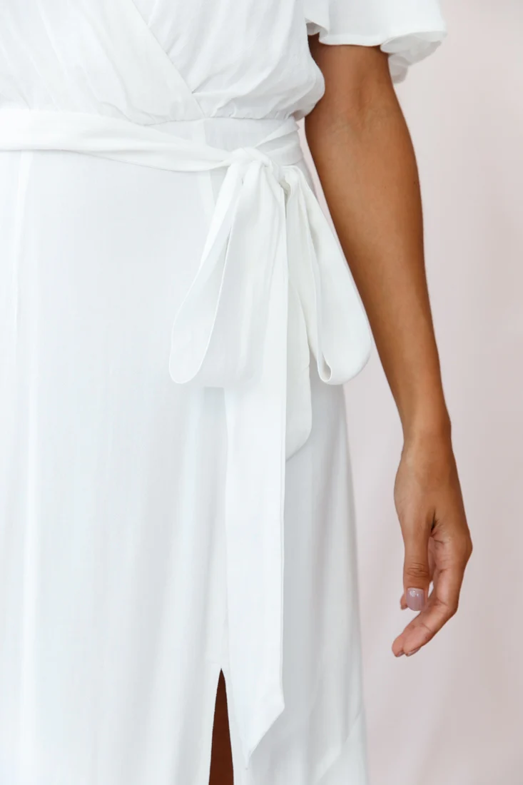 Friday Surplice Neckline Front Split Maxi Dress White