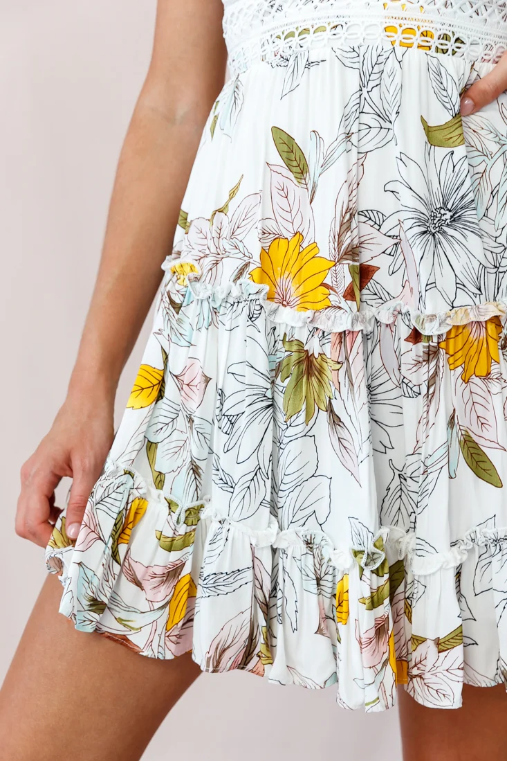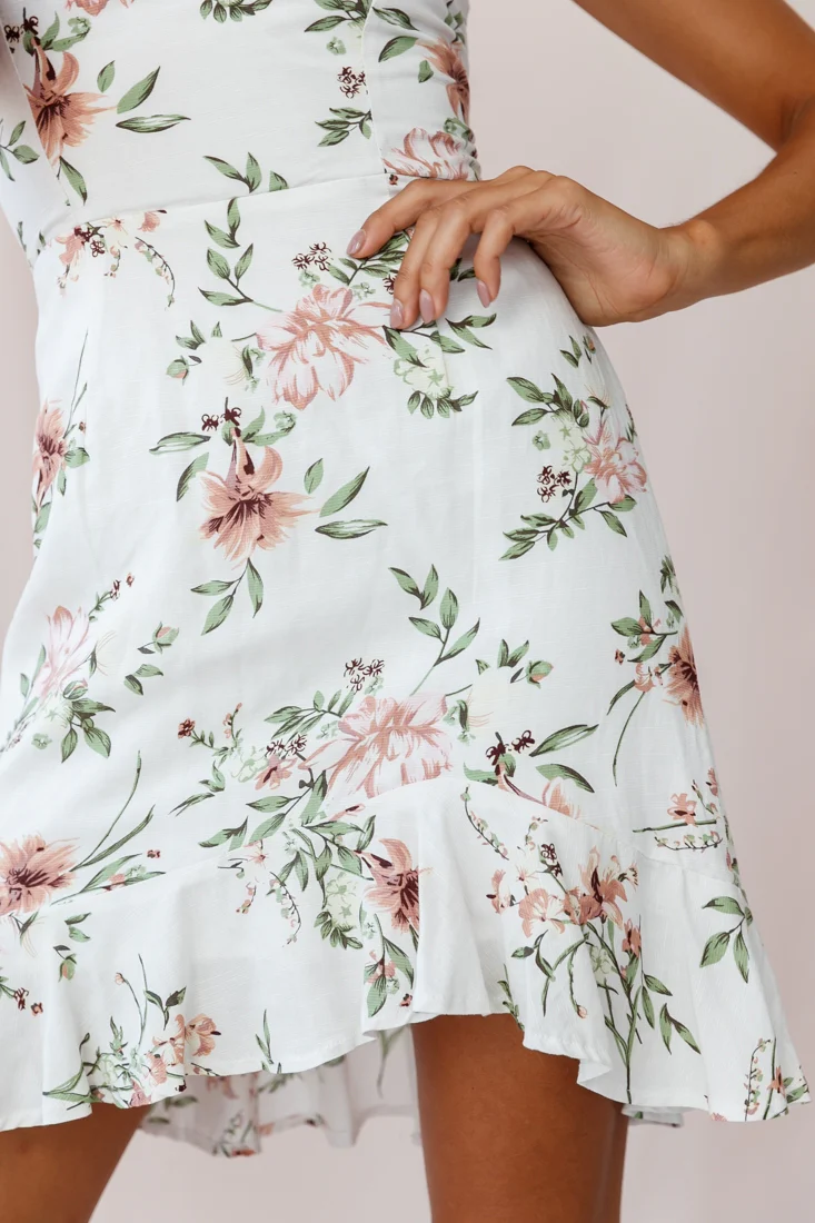 Taj Lace-Up Back Asymmetrical Hem Dress Floral Print White