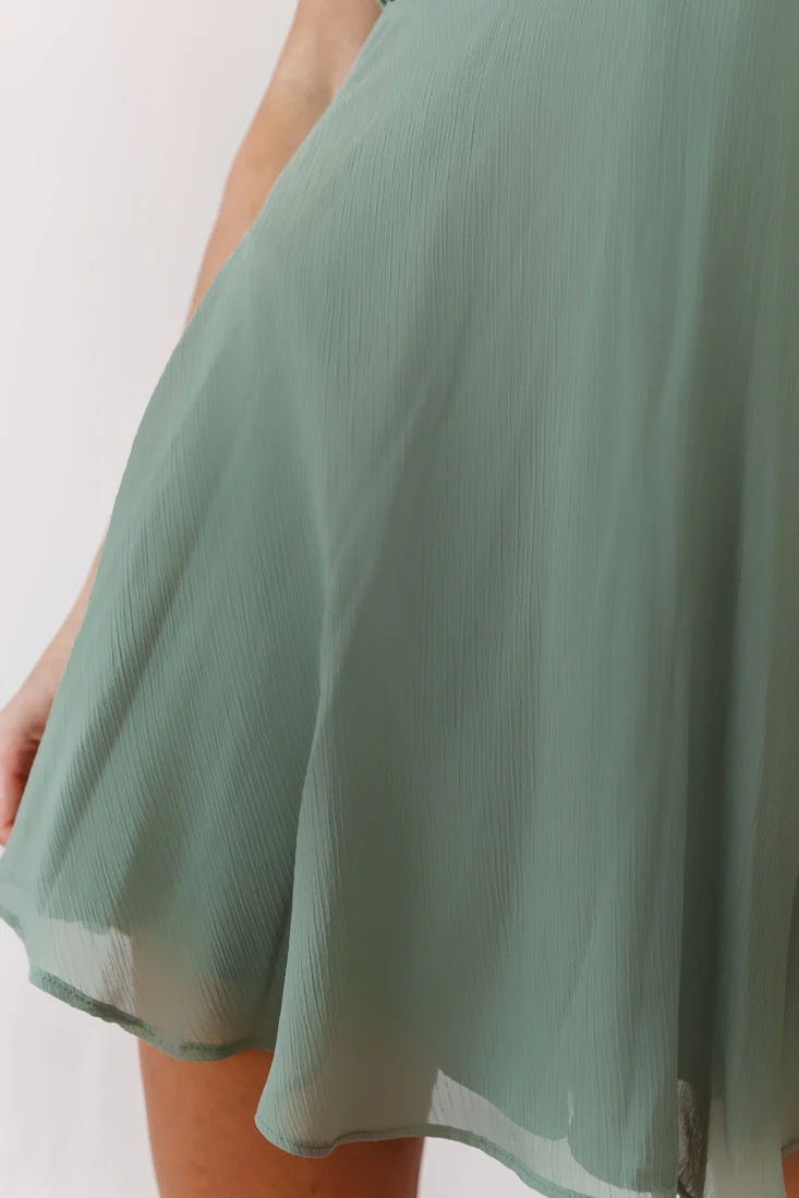 Petra Pintuck Pleat Fluted Hem Dress Sage