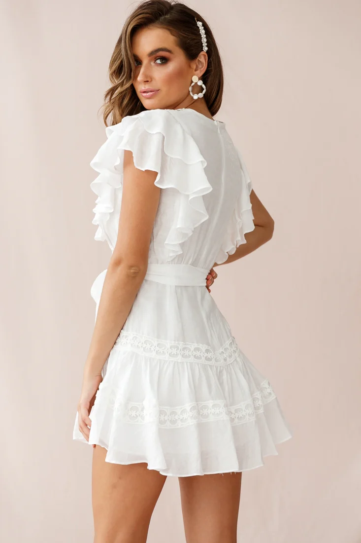 Sheridan Double Frill Sleeve Crochet Detail Dress White