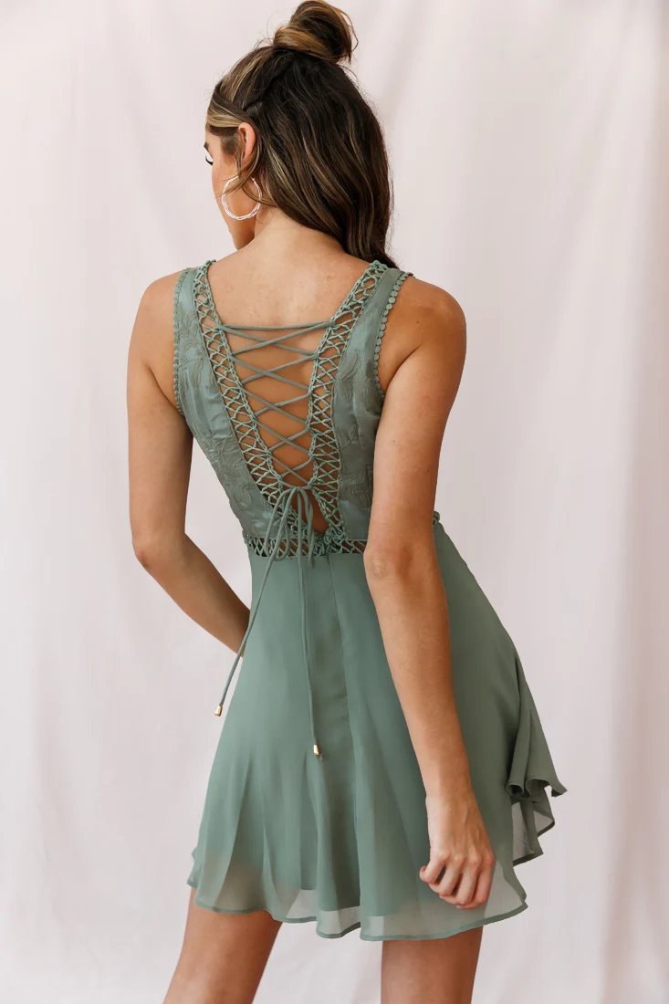 Reverie Cold Shoulder Cami Strap Dress Sage