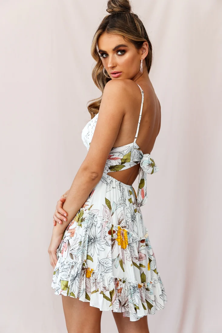 Sanctuary Applique Bust Tie-Knot Back Dress Floral Print White