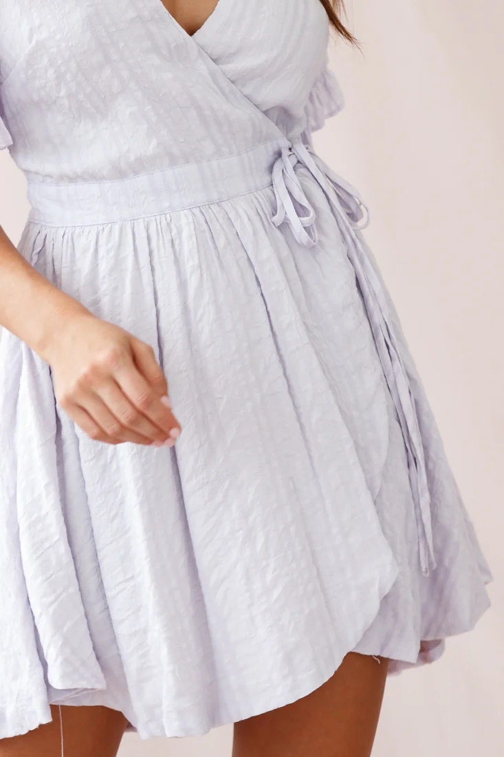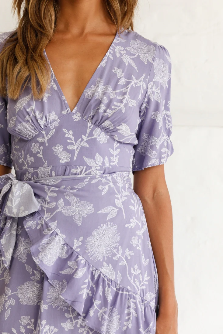 Wonderland Wrap Front Tea Dress Floral Print Lavender