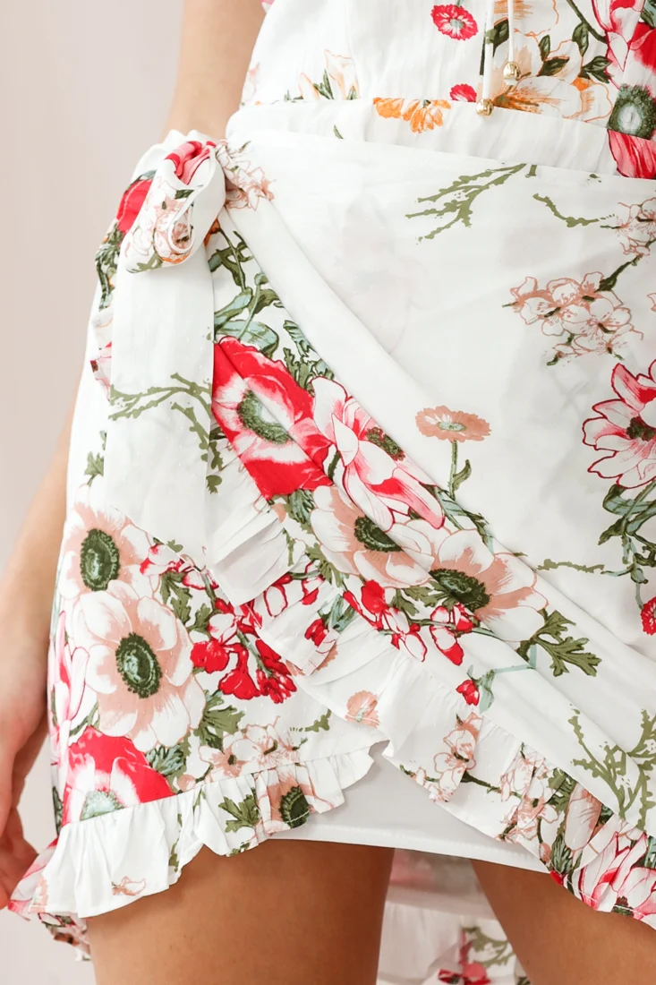 Natalie Sweetheart Neckline Wrap Dress Floral Print White