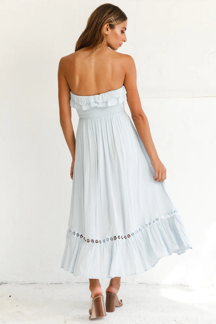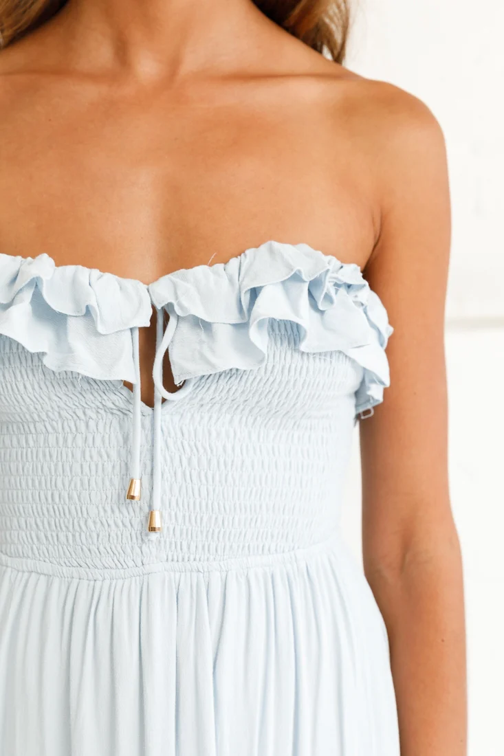 Daydream Shirred Bust Frill Trim Maxi Dress Ice Blue