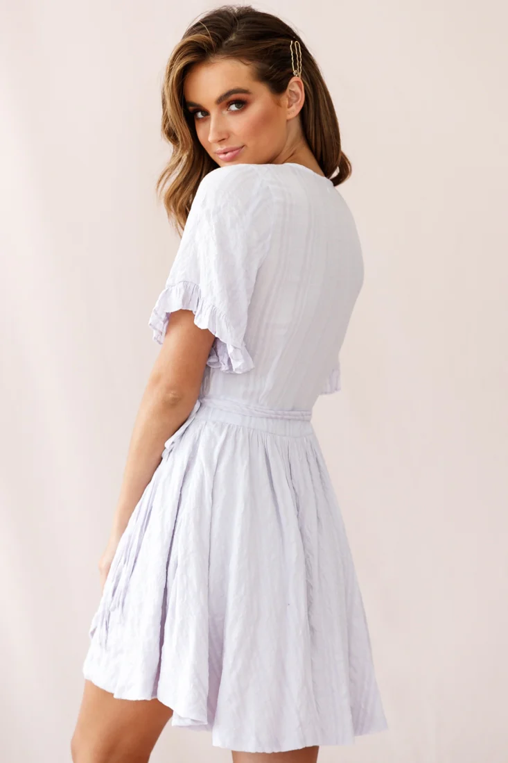 Cara Frill Trim Wrap Dress Stripe Print Lavender