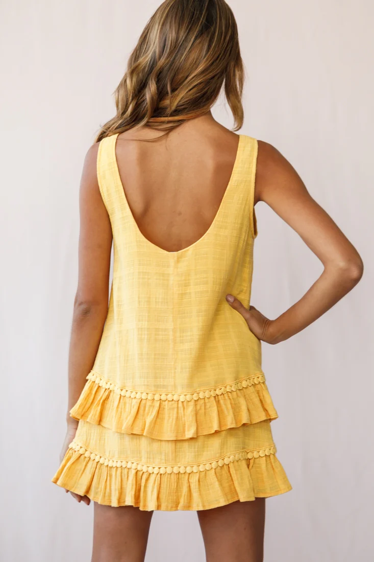 Candice Tiered Frill Hem Scooped Back Dress Yellow