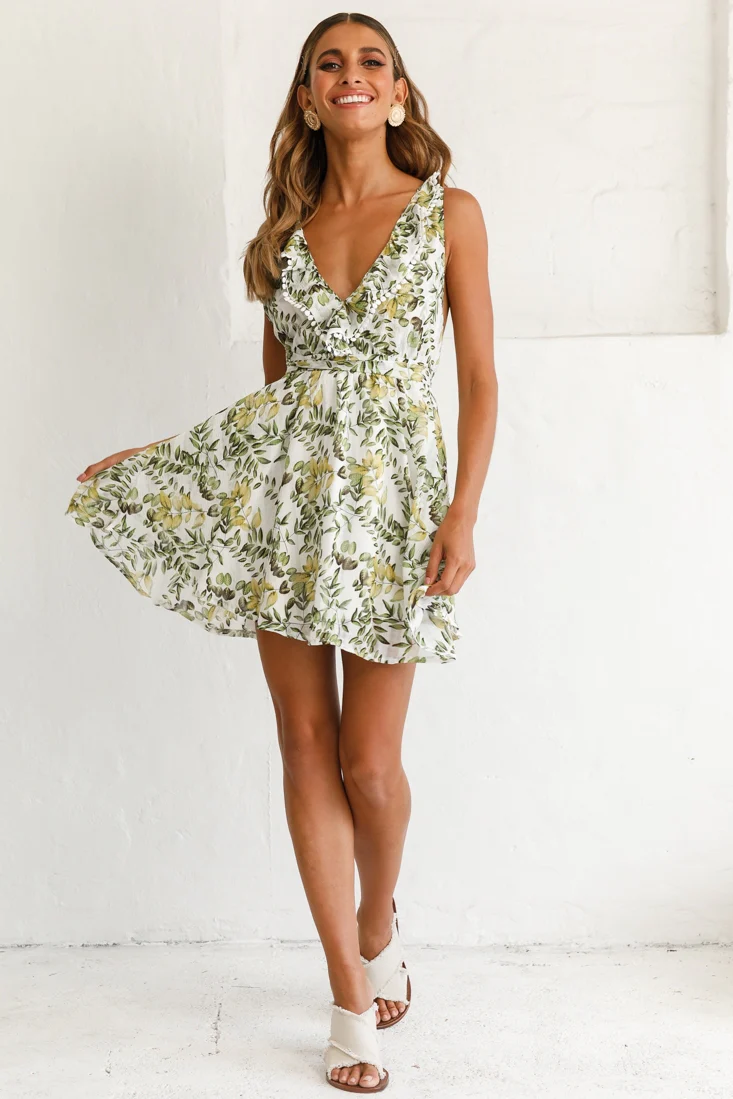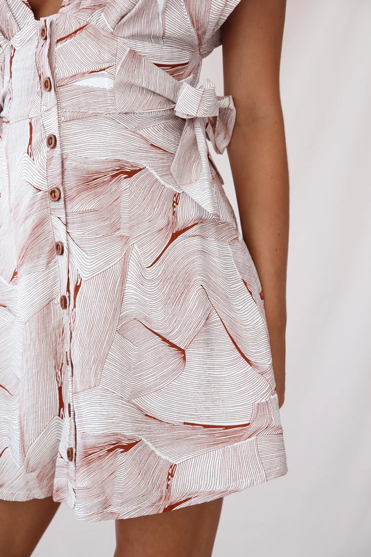 Valerie Criss-Cross Back V-Neckline Dress Leaf Print White