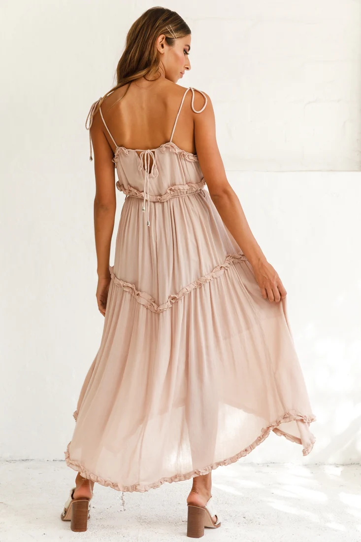 Santa Monica String Tie Maxi Dress Beige