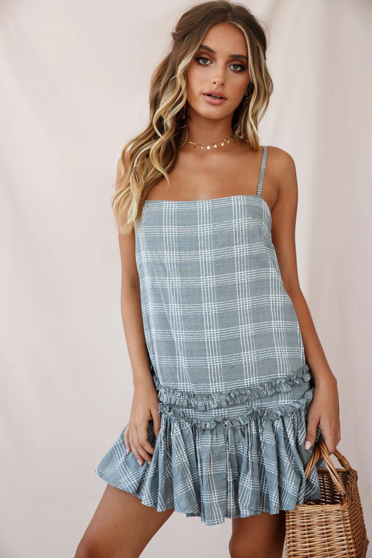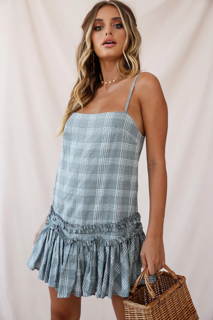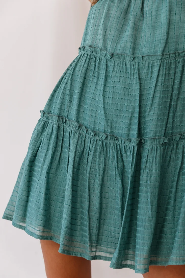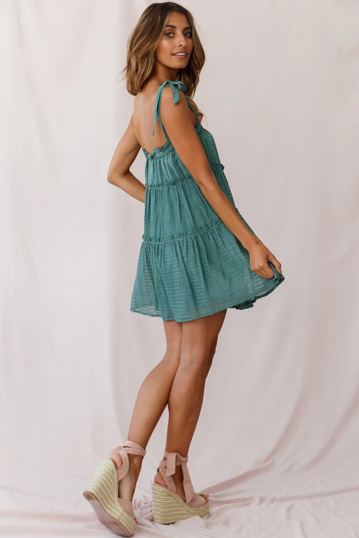Dolly Layered Ruffle Tied Shoulder Strap Dress Green