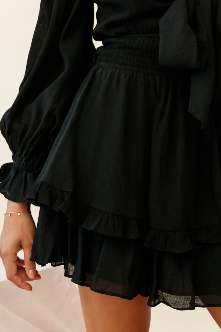 Anthea Bow-Tie Front Layered Frill Dress Black