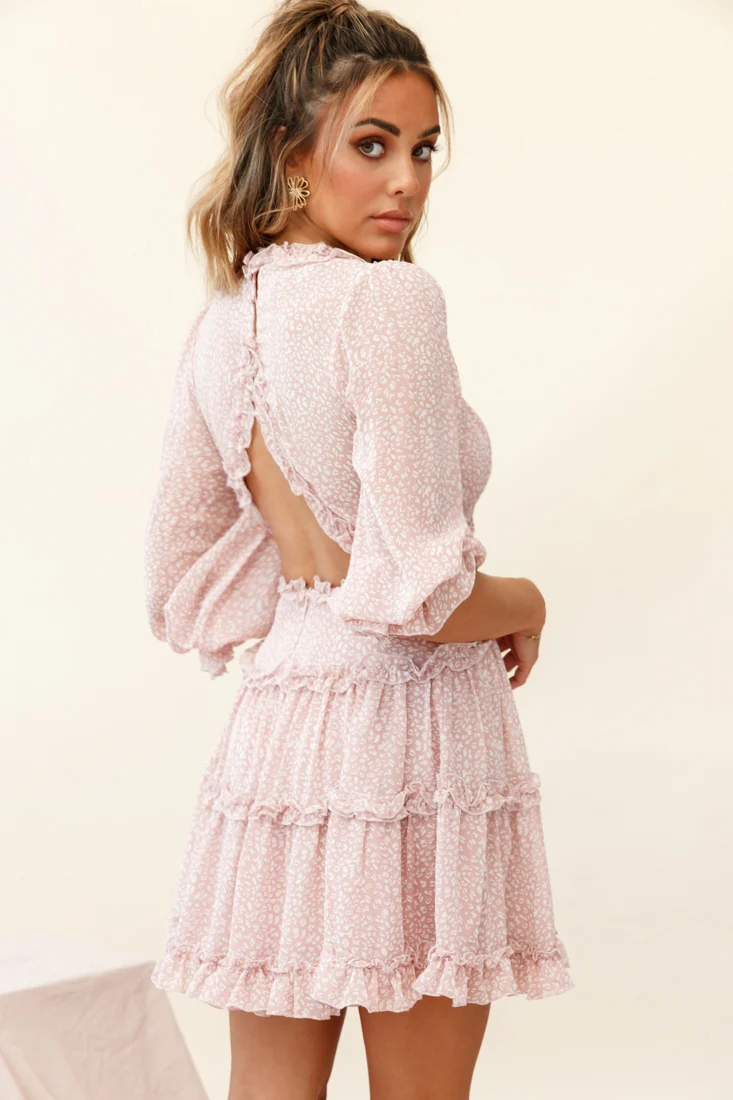 Laney Cutout Back Balloon Sleeve Dress Speckle Print Pink