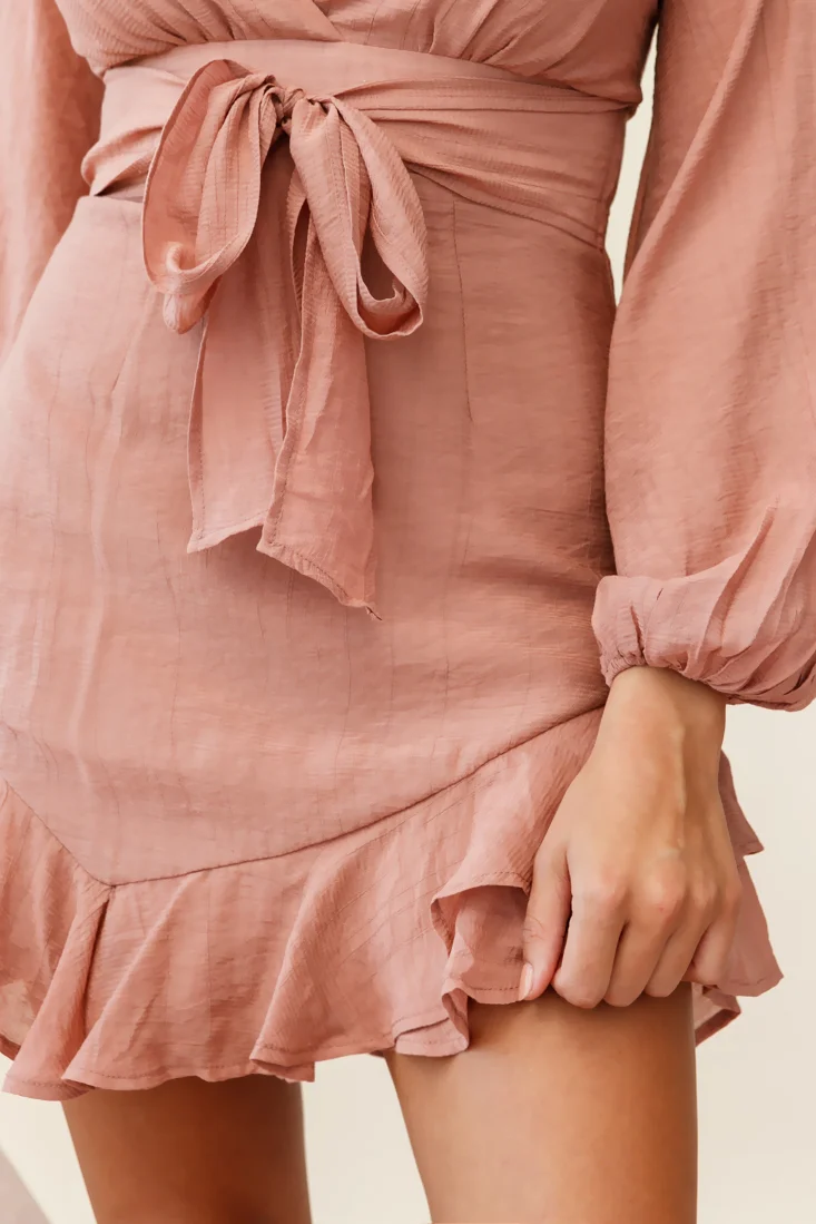 Aspley Flare Cuff Waist Tie Dress Antique Rose