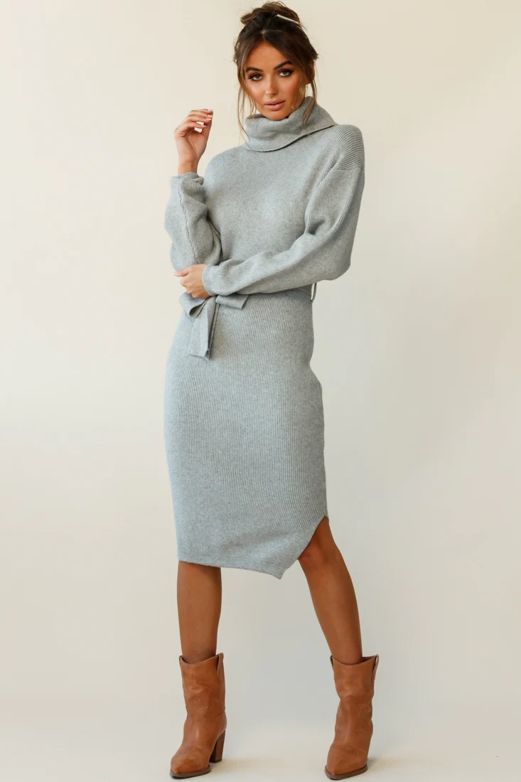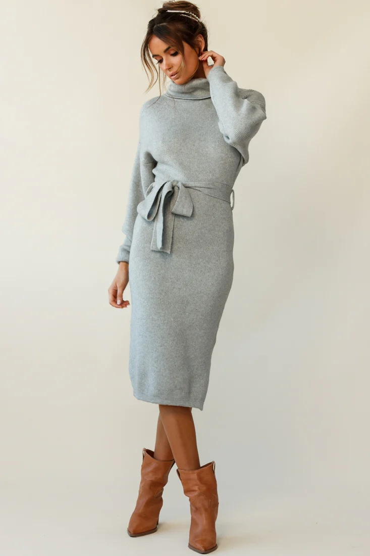 Marco Long Sleeve Turtleneck Knit Midi Dress Grey