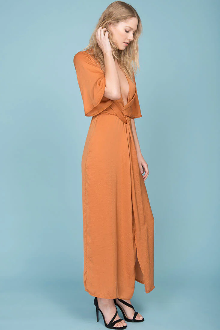 Cleo High Slit Maxi Dress Tan