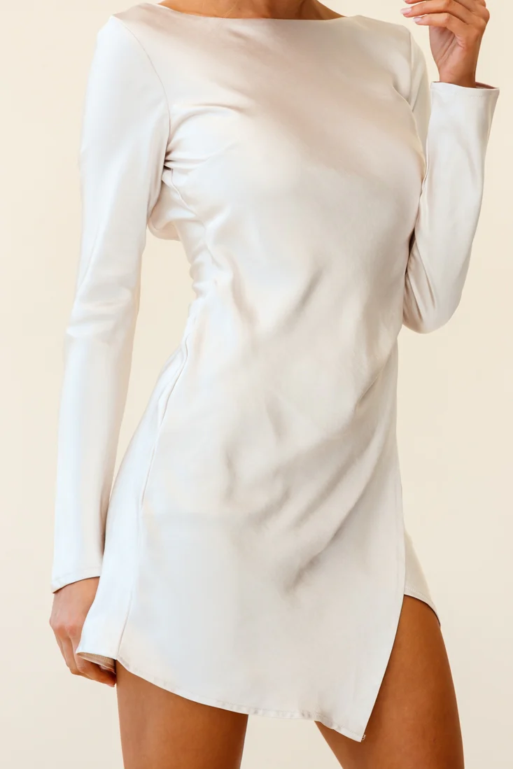 Thank Me Later Long Sleeve Open Back Dress Champagne