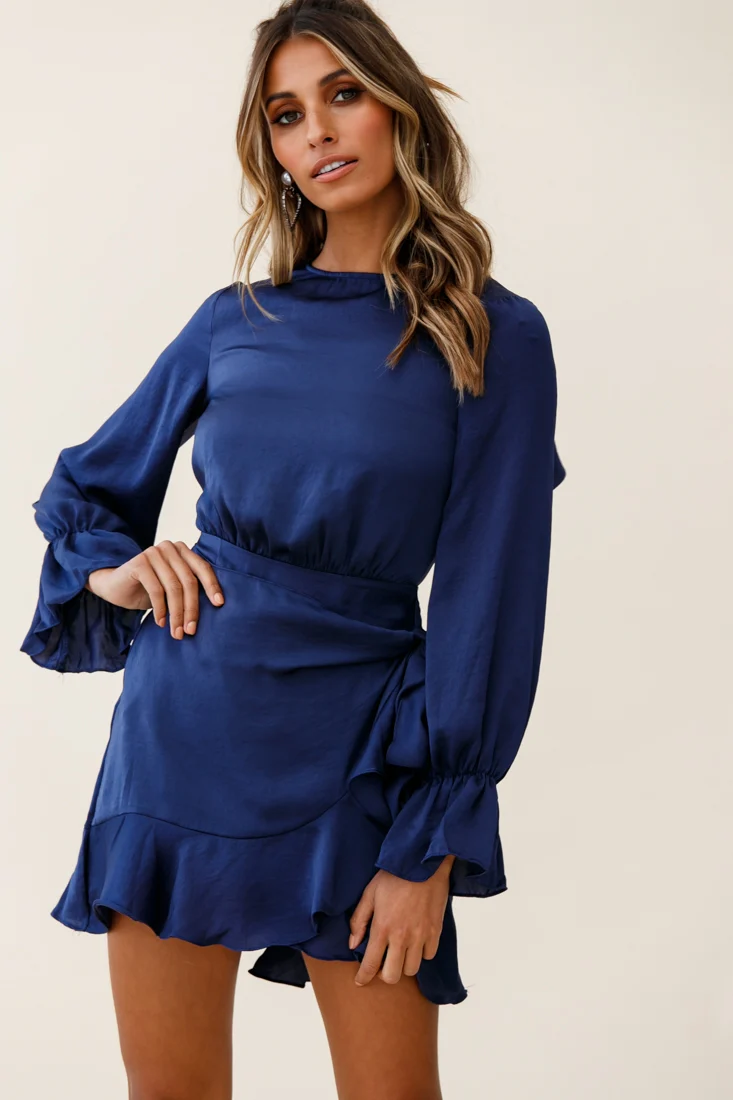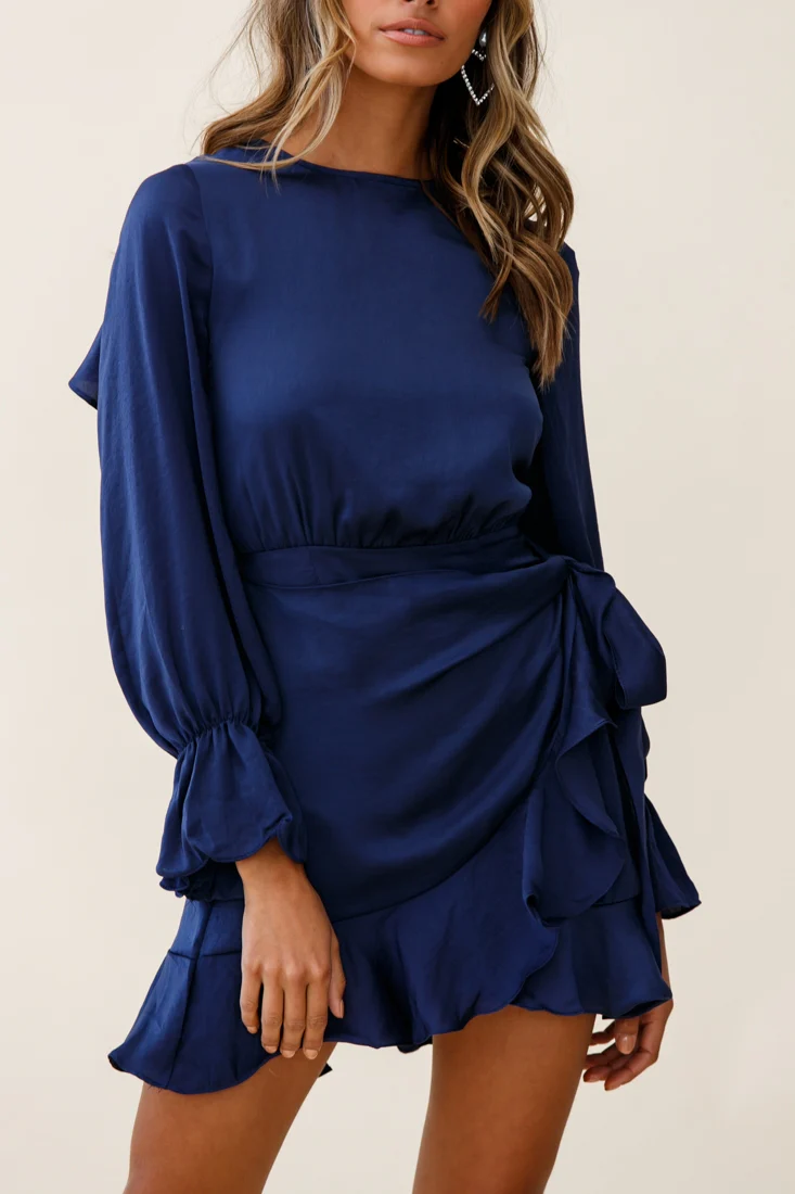 Greta Tiered Ruffle Chiffon Dress Midnight Blue