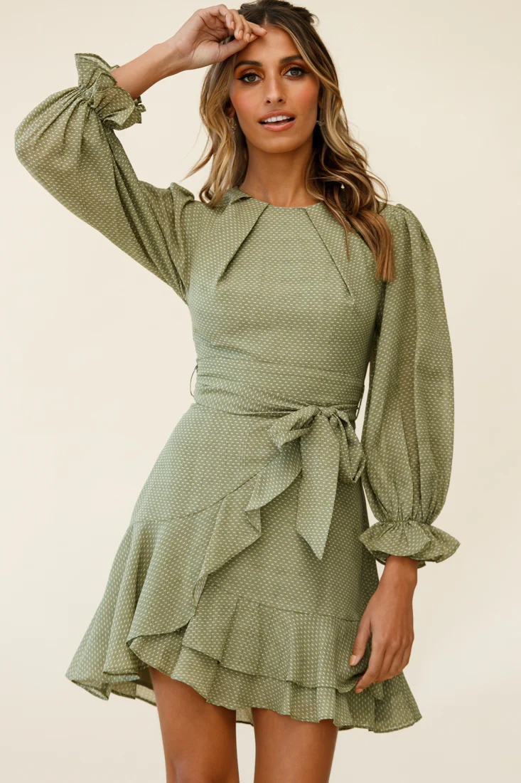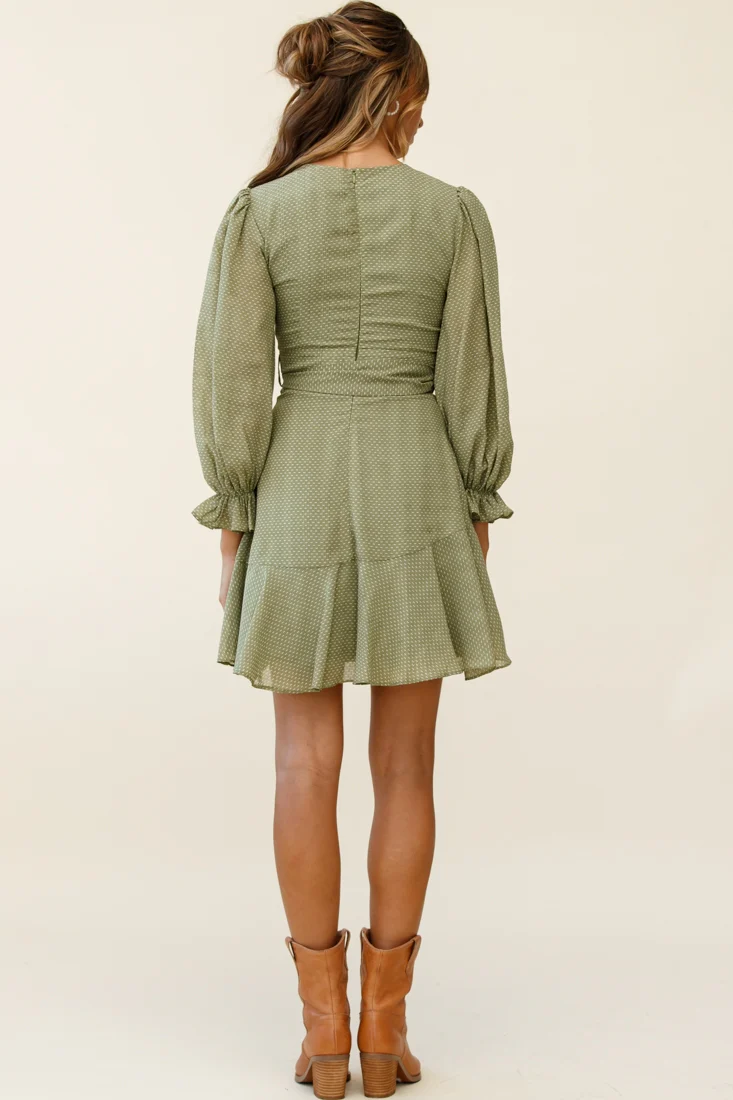 Agnes Long Sleeve Pleat Detail Dress Olive
