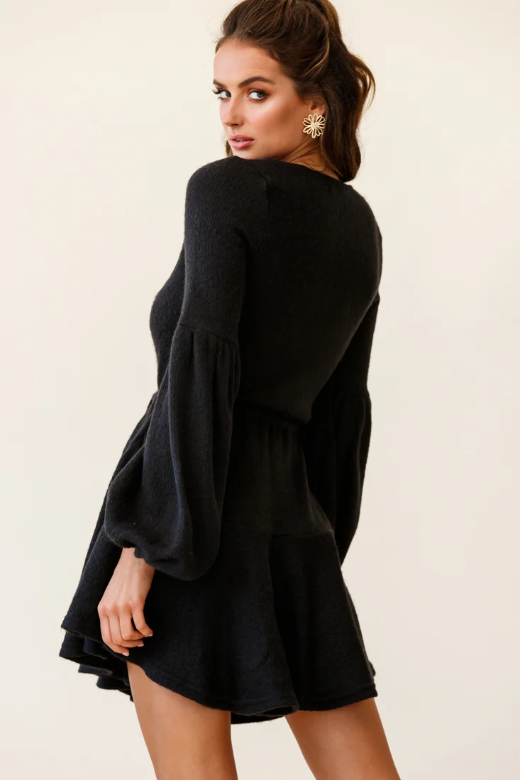 Annalise Long Sleeve Drawstring Knit Dress Black