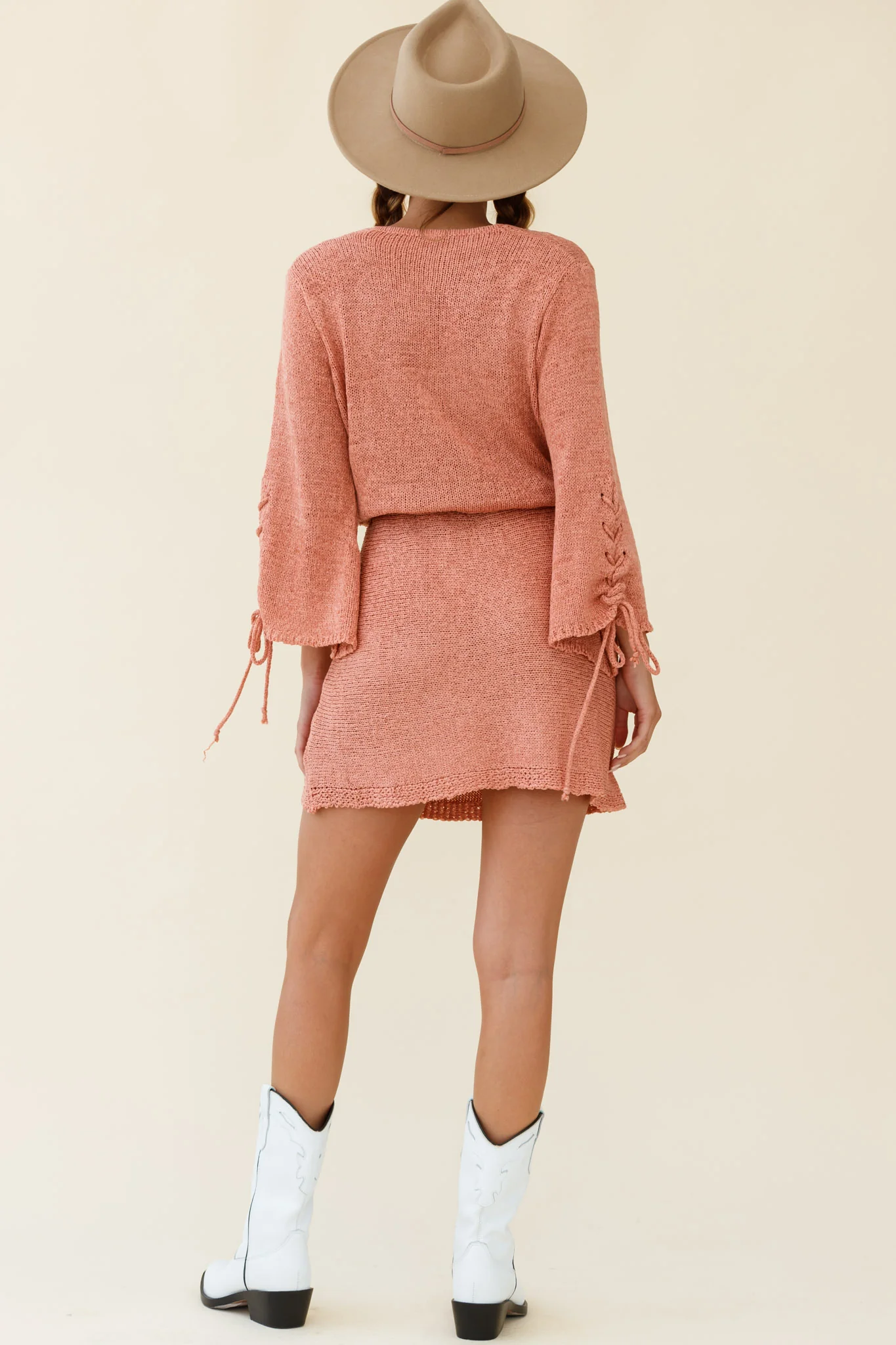 Cairo Flared Sleeve Knitted Dress Rose