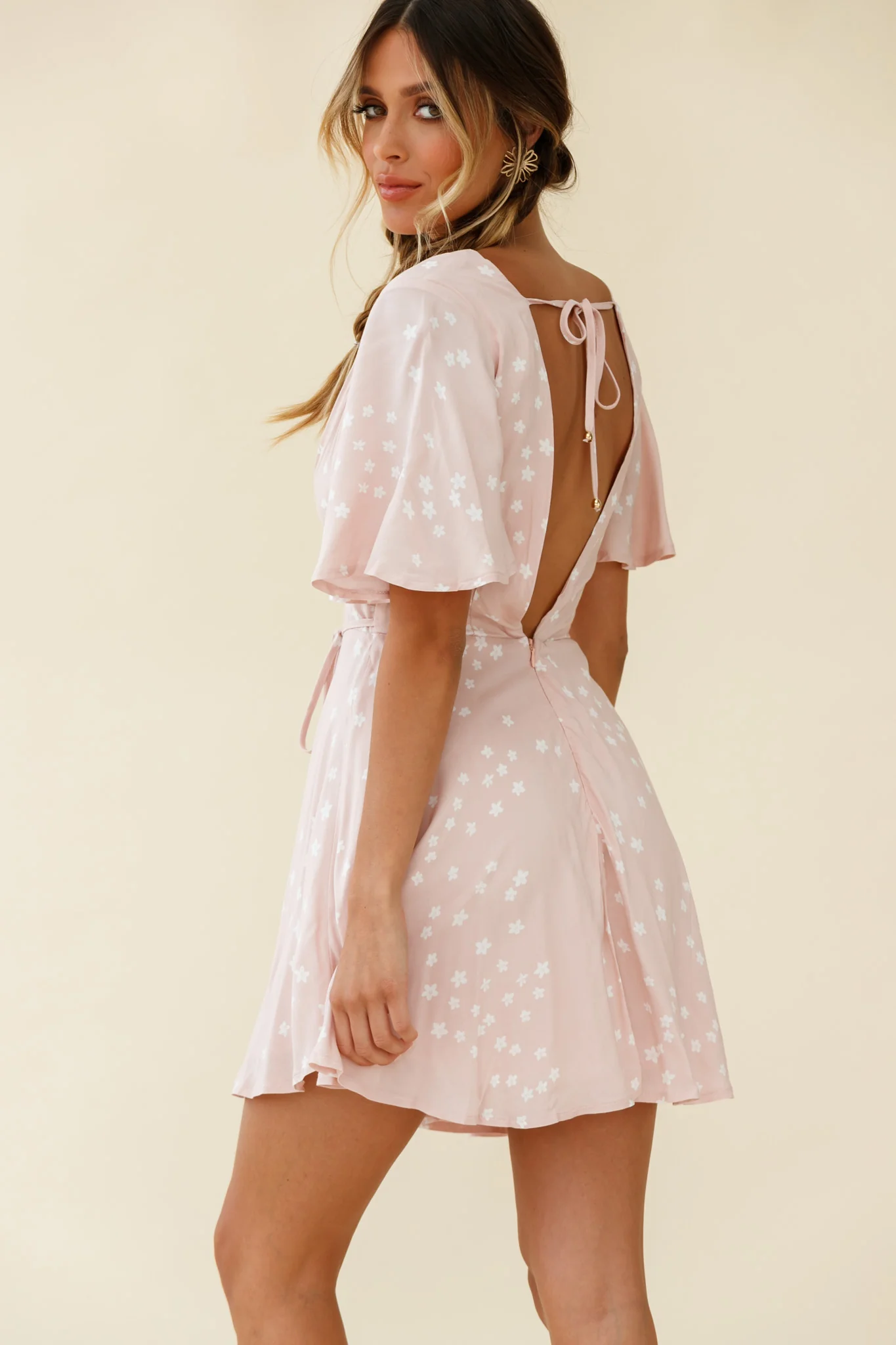 Stealing Hearts Flutter Sleeve Wrap Front Dress Floral Print White