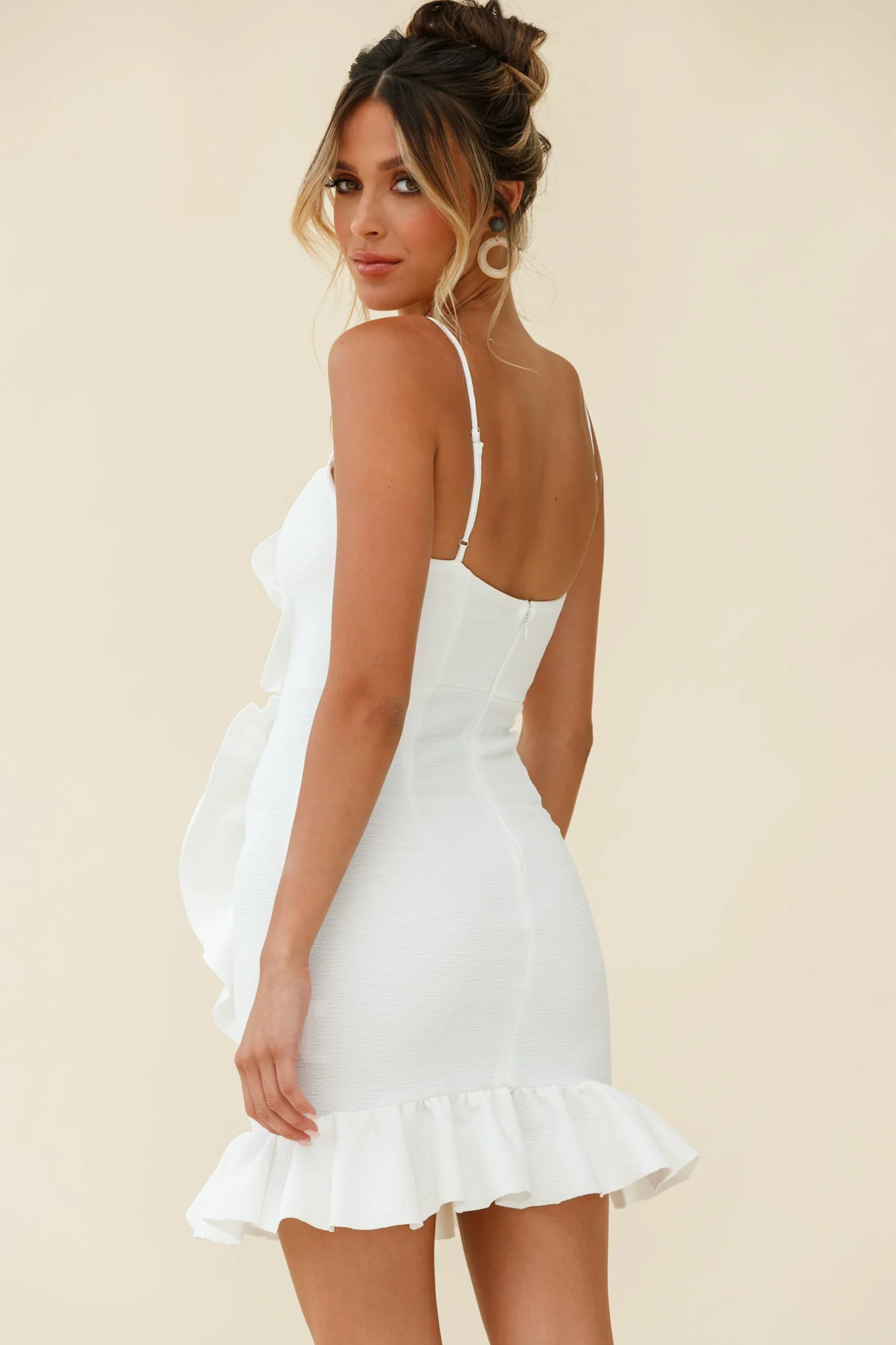 Juanita Half Moon Ruffle Detail Bodycon Dress White