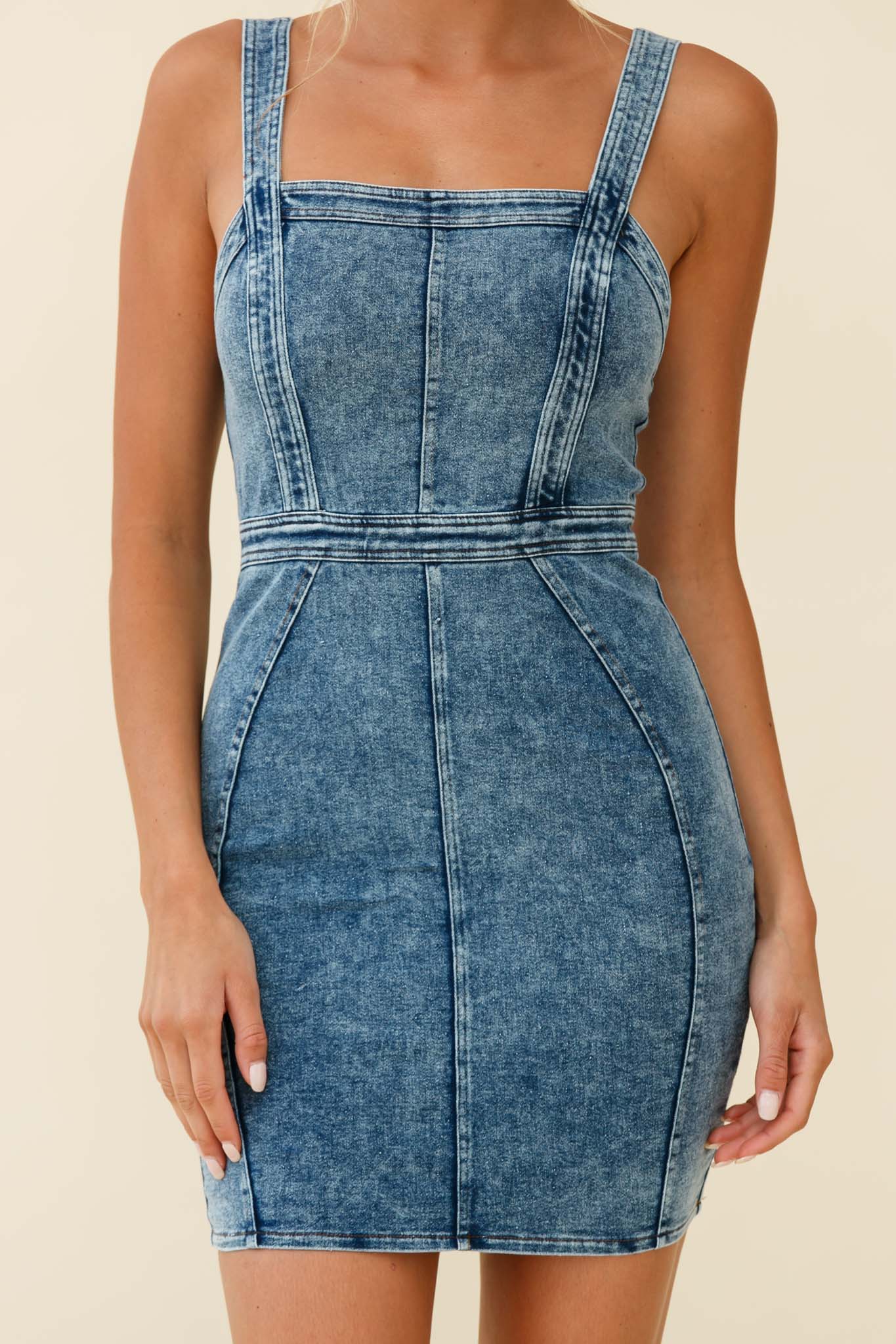 Shalom Structured Bodycon Dress Washed Blue
