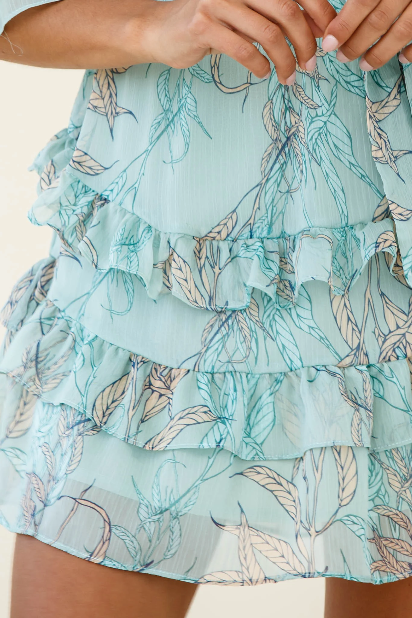 Time Will Tell Angel Sleeve Frill Detail Dress Leaf Print Mint