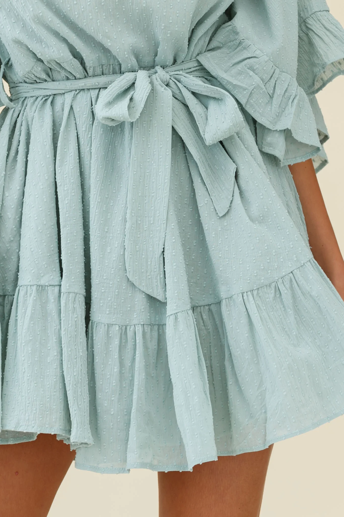Queensland Tiered Frill Belt Dress Nude