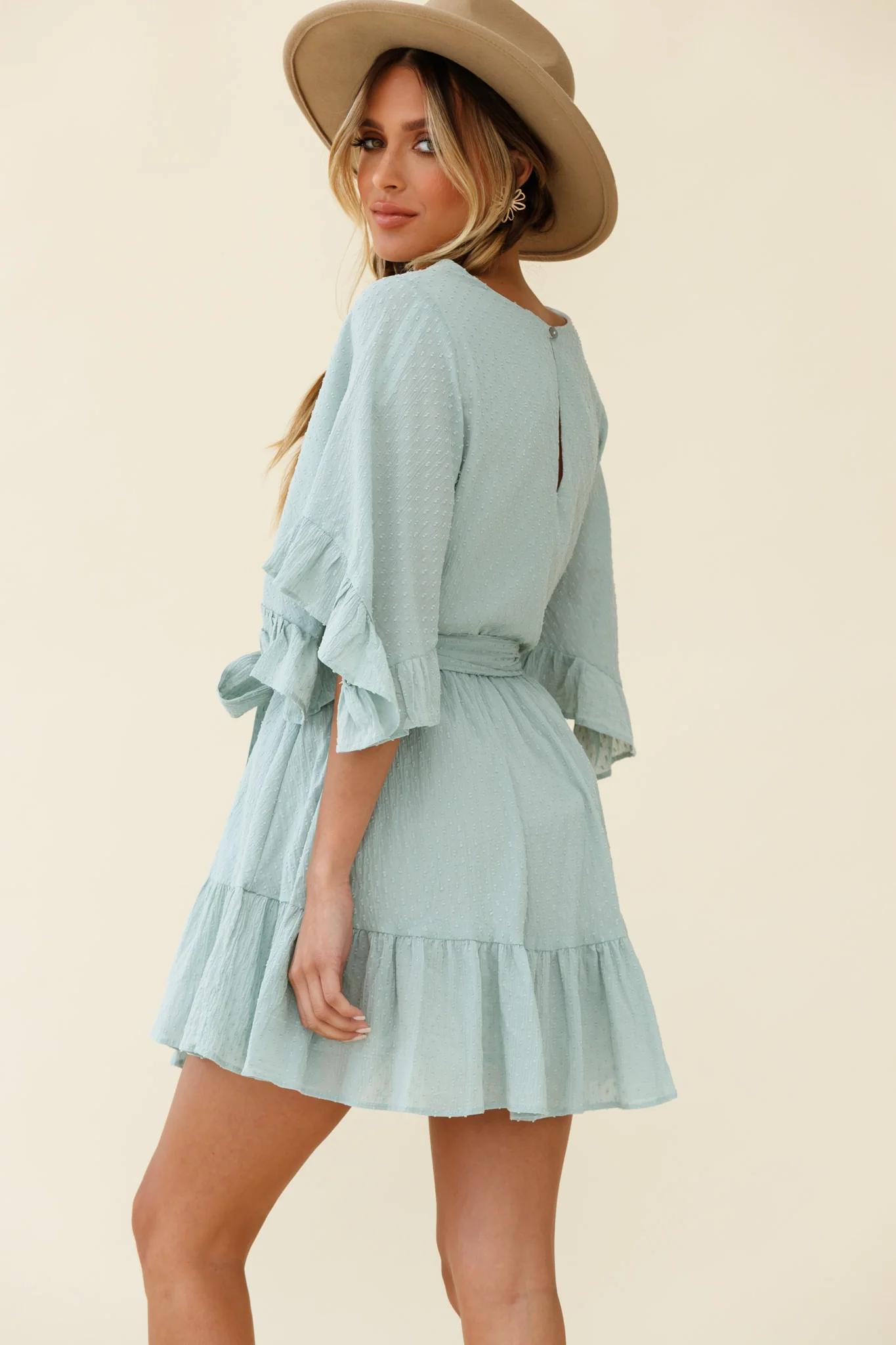 Joni Batwing Sleeve Waist Tie Dress Sage