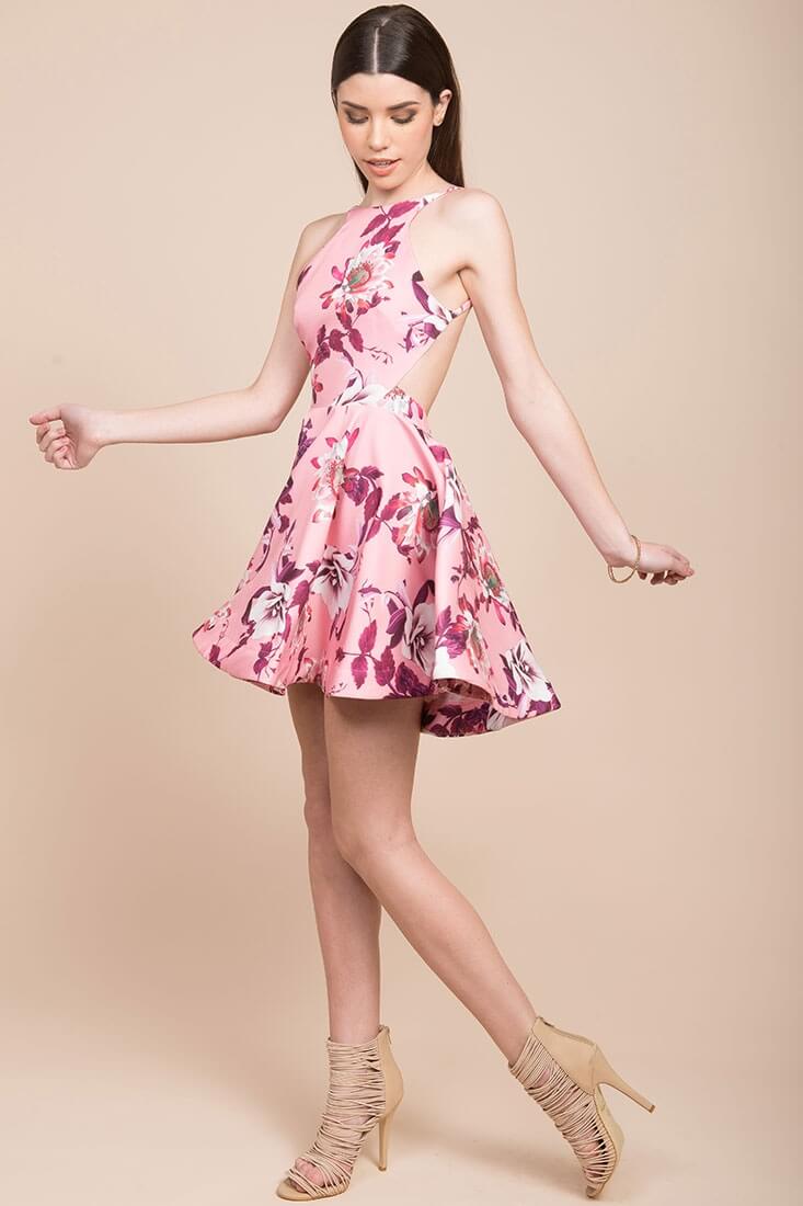 Stella Open Back Fit & Flare Floral Print Dress Pink